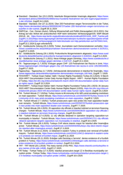 ■ TR-Today - Türkiye Today (25.10.2024): Drunk man attacks Kurdish-oriented DEM Party headquar ters in Türkiye’s Ankara - Türkiye Today, https://www.turkiyetoday.com/turkiye/drunk-man-attacks-k urdish-oriented-dem-party-headquarters-in-turkiyes-ankara-70146 , Zugriff 19.3.2025 ■ USDOS - United States Department of State [USA] (22.4.2024): Country Report on Human Rights Practices 2023 – Turkey (Türkiye), https://www.state.gov/wp-content/uploads/2024/02/528267_TU ̈RKIYE-2023-HUMAN-RIGHTS-REPORT.pdf , Zugriff 23.4.2024 [Login erforderlich] ■ USDOS - United States Department of State [USA] (20.3.2023): Country Report on Human Rights Practices 2022 – Turkey (Türkiye), https://www.state.gov/wp-content/uploads/2023/03/415610_TU ̈RKIYE-2022-HUMAN-RIGHTS-REPORT.pdf , Zugriff 29.9.2023 ■ VOA - Voice of America (1.11.2024): Erdogan sues opposition chief, Istanbul mayor for slander, https: //www.voanews.com/a/erdogan-sues-opposition-chief-istanbul-mayor-for-slander/7848167.html , Zugriff 5.11.2024 ■ WZ - Wiener Zeitung (25.4.2023): Neue Verhaftungswelle in der Türkei, https://www.wienerzeitung. at/nachrichten/politik/welt/2186365-Neue-Verhaftungswelle-in-der-Tuerkei.html , Zugriff 23.2.2024 ■ YR - Yetkin Report (3.7.2025): After İmamoğlu, Turkish opposition leader Özel faces prison threat, too - Yetkin Report, https://yetkinreport.com/en/2025/07/03/after-imamoglu-turkish-opposition-leade r-ozel-faces-prison-threat-too , Zugriff 4.7.2025 ■ Zeit Online - Zeit Online (11.6.2025): Türkei: Erdoğans Partei übernimmt nach Festnahme von Bürgermeister dessen Amt, https://www.zeit.de/politik/ausland/2025-06/tuerkei-recep-tayyip-erdog an-buergermeister-wahl, Zugriff 4.7.2025 ■ Zeit Online - Zeit Online (26.4.2025): Türkei: Erneute Festnahmen von Mitarbeitern der Stadtver waltung in Istanbul, https://www.zeit.de/politik/ausland/2025-04/tuerkei-festnahmen-mitarbeiter-sta dtverwaltung-istanbul, Zugriff 29.4.2025 ■ Zeit Online - Zeit Online (17.6.2021): Eine Tote bei Angriff auf Büro der pro-kurdischen HDP, https: //www.zeit.de/politik/2021-06/tuerkei-hdp-kurdisch-oppositionspartei-angriff-tote , Zugriff 23.2.2024 ■ Zeit Online - Zeit Online (31.3.2021): Türkei: Verfassungsgericht gibt HDP-Verbotsklage zurück, https://www.zeit.de/news/2021-03/31/tuerkei-verfassungsgericht-gibt-hdp-verbotsklage-zurueck , Zugriff 23.2.2024 14 Verfolgung fremder Staatsbürger wegen Straftaten im Ausland Letzte Änderung 2025-08-06 12:59 Der UN-Menschenrechtsrat veröffentlichte Mitte September 2020 einen Bericht der Unabhän gigen Internationalen Untersuchungskommission für die Arabische Republik Syrien, wonach letztere Informationen erhielt, die darauf hindeuten, dass syrische Staatsangehörige, darunter auch Frauen, die von der (pro-türkischen) Syrischen Nationalarmee (SNA) in der Region Ra’s al-’Ayn festgenommen wurden, anschließend von türkischen Streitkräften in die Türkei überstellt, und dort nach türkischem Strafrecht wegen vermeintlicher Verbrechen in der syrischen Region Ra’s al-’Ayn angeklagt wurden, unter anderem wegen Mordes oder der Mitgliedschaft in einer terroristischen Vereinigung. Die Kommission stellte ferner fest, dass die Überstellung von Sy rern, die von der SNA inhaftiert wurden, auf türkisches Hoheitsgebiet dem Kriegsverbrechen der unrechtmäßigen Deportation geschützter Personen gleichkommen kann (UNHRC 14.8.2020). Sowohl Araber als auch Kurden wurden zwischen Oktober und Dezember 2019 im Nordosten Syriens festgenommen, nachdem die Türkei nach ihrem Einmarsch in Nordsyrien die effekti ve Kontrolle über das Gebiet übernommen hatte (HRW 3.2.2021). Die Verhaftungen erfolgten hauptsächlich in den Vororten von Tell Abyad und Ra’s al-’Ayn. Bei den Betroffenen handelte es sich auch um Personen, die für die Institutionen der Autonomieverwaltung arbeiteten, und andere, die keinerlei militärische oder politische Verbindungen zu dieser hatten. Unter den in die Türkei Überstellten befanden sich auch Kämpfer der Volksschutzeinheiten (YPG) und der 199