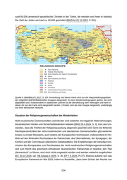 rund 60.000 armenisch-apostolische Christen in der Türkei, die meisten von ihnen in Istanbul. Die Zahl der Juden wird auf ca. 18.000 geschätzt (BMZ/AA 22.11.2023, S.151). Quelle 6: BMI/BMLVS 2017, S. 23f. Anmerkung: Auf dieser Karte sind nur die Hauptsiedlungsgebiete der religiösen und konfessionellen Gruppen dargestellt. Es kann Minderheitengruppen geben, die nicht abgebildet sind. Insbesondere in städtischen Zentren ist die Bevölkerung sehr heterogen und kann in dieser Art von der Karte nicht dargestellt werden. Christen sind als eine Gruppe dargestellt, unabhängig von ihrer ethnischen Herkunft. Situation der Religionsgemeinschaften der Minderheiten Nicht-muslimische Gemeinschaften und Aleviten sind weiterhin mit negativen Wahrnehmungen, bürokratischen Hürden und Sicherheitsbedenken belastet (MRG 29.4.2024, S. 3), trotz des Um standes, dass die Freiheit der Religionsausübung allgemein geachtet wird. Denn die fehlende Rechtspersönlichkeit der nicht-muslimischen und alevitischen Gemeinschaften gibt weiterhin Anlass zu ernster Besorgnis, auch seitens der Europäischen Kommission, insbesondere im Hin blick auf den fehlenden Rechtsstatus der Patriarchate, des Oberrabbinats, der Synagogen, der Kirchen und der Cem-Häuser (alevitische Gebetsstätten). Die Empfehlungen der Venedig-Kom mission des Europarates zum Rechtsstatus der nicht-muslimischen Religionsgemeinschaften und zum Recht des griechisch-orthodoxen ökumenischen Patriarchats in Istanbul, den Titel „ ökumenisch“ zu führen, sind noch nicht umgesetzt worden und werden weiterhin angefochten (EC 30.10.2024; vgl. ÖB Ankara 4.2025, S. 35, EP 7.5.2025, Pt.27). Ebenso äußerte sich das Europäische Parlament im Mai 2025, indem es feststellte, „ dass beim Schutz der Rechte von 224