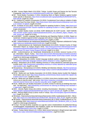 ■ HRW - Human Rights Watch (15.8.2024): Türkiye: Kurdish Songs and Dances Are Not Terrorist Propaganda, https://www.ecoi.net/de/dokument/2114082.html, Zugriff 10.9.2024 ■ İBV - İsmail Beşikçi Foundation (7.2021): Monitoring Work on Rights Violations against Kurdish Artists specific to Musicians, https://www.ismailbesikcivakfi.org/uploads/files/KURDISHARTISTS_ ENG.pdf.pdf, Zugriff 23.1.2024 ■ IFE - Initiative for Freedom of Expression (2.8.2024): Constitutional Court ruling on violation of rights - Düşünce Suçu?!na Karşı Girişim, https://www.dusun-think.net/en/news/constitutional-court-rulin g-on-violation-of-rights/# , Zugriff 13.8.2024 ■ K24 - Kurdistan 24 (10.4.2022): Teacher expelled for speaking Kurdish in Turkey, https://www.kurd istan24.net/en/story/27935-Teacher-expelled-for-speaking-Kurdish-in-Turkey , Zugriff 23.1.2024 [Login erforderlich] ■ KSC - Kurdish Studies Center (12.2023): KÜRT MESELESİ VE KÜRT ALGISI - ÖZET RAPOR, https://kurdish-studies.org/wp-content/uploads/2023/12/KSC_Kurt_Meselesi_Algilar_Talepler_Tutu mlar_Sunum.pdf, Zugriff 19.12.2024 ■ KurdLRMRP - Kurdish Language Rights Monitoring and Reporting Platform (2.2025): Report on Systematic Violations Against Kurdish Language and Culture in Turkey 2024, https://medyanews.ne t/wp-content/uploads/2025/02/Kurdish-Monitoring.pdf, Zugriff 1.4.2025 ■ MBZ - Außenministerium der Niederlande [Niederlande] (2.2025a): Algemeen ambtsbericht Turkije, https://www.ecoi.net/de/dokument/2122226.html, Zugriff 13.3.2025 ■ MBZ - Außenministerium der Niederlande [Niederlande] (31.8.2023): General Country of Origin Information Report on Türkiye (August 2023), https://www.government.nl/binaries/government/ documenten/reports/2023/08/31/general-country-of-origin-information-report-on-turkiye-august- 2023/General COI report Turkiye (August 2023).pdf, Zugriff 13.11.2023 ■ MBZ - Außenministerium der Niederlande [Niederlande] (31.10.2019): General Country of Ori gin Information Report Turkey, https://www.rijksoverheid.nl/binaries/rijksoverheid/documenten/ ambtsberichten/2019/10/31/algemeen-ambtsbericht-turkije-oktober-2019/Turkije October 2019.pdf, Zugriff 29.11.2023 [Login erforderlich] ■ Medya - MedyaNews (6.3.2025): Kurdish language textbook authors detained in Turkey, https: //medyanews.net/kurdish-language-textbook-authors-detained-in-turkey , Zugriff 20.3.2025 ■ Medya - MedyaNews (28.10.2024): Wedding ceremony in Turkey attacked by nationalist group over Kurdish music, https://medyanews.net/wedding-ceremony-in-turkey-attacked-by-nationalist-group -over-kurdish-music , Zugriff 5.11.2024 ■ Mezopotamya - Mezopotamya (12.8.2024): Wedding raid detaniees releases, http://mezopotamyaa jansi35.com/en/search/content/view/250210?page=1&key=c1be437cd6cd0e2d3806877a2e79ce97, Zugriff 21.8.2024 ■ MLSA - Media and Law Studies Association (10.10.2024): Ministry blocks Kurdish film Rojbash, MLSA takes case to court, https://www.mlsaturkey.com/en/ministry-blocks-kurdish-film-rojbash-mls a-takes-case-to-court , Zugriff 20.3.2025 ■ MLSA - Media and Law Studies Association (1.10.2024): Koma Hevra members asked, ’Did anyone instruct you to sing the song?’ after arrest, https://www.mlsaturkey.com/en/koma-hevra-members-a sked-did-anyone-instruct-you-to-sing-the-song-after-arrest , Zugriff 1.4.2025 ■ MLSA - Media and Law Studies Association (1.8.2024): Arrests for dancing at weddings face back lash: ”No legal basis“, https://mlsaturkey.com/en/arrests-for-dancing-at-weddings-face-backlash-n o-legal-basis, Zugriff 13.8.2024 ■ MRG - Minority Rights Group (29.4.2024): Unveiling Discrimination: Minorities in Türkiye, https: //minorityrights.org/app/uploads/2024/04/mrge-turkey-en-apr24-spreads.pdf , Zugriff 2.12.2024 ■ MRG - Minority Rights Group (2.2024): Kurds in Türkiye, https://minorityrights.org/communities/kur ds-2, Zugriff 22.11.2024 ■ ÖB Ankara - Österreichische Botschaft Ankara [Österreich] (4.2025): Asylländerbericht 2024 – ÖB An kara, https://www.ecoi.net/en/file/local/2125282/TUER_ÖB Bericht_2025_04.pdf, Zugriff 13.5.2025 ■ ÖB Ankara - Österreichische Botschaft Ankara [Österreich] (28.12.2023): Asylländerbericht zur Tür kei, Dezember 2023, https://www.ecoi.net/en/file/local/2102906/TUER_ÖB Bericht_2023_12_28.pdf, Zugriff 8.1.2024 [Login erforderlich] ■ Pro Asyl - Pro Asyl (9.2024): Gutachten zur Lage der Justiz in Strafverfahren mit politischem Bezug (Unabhängigkeit, Unparteilichkeit, faire Verfahren, insbes. bei Terrorismusvorwürfen), https://www. ecoi.net/de/dokument/2115013.html, Zugriff 17.6.2025 ■ Rudaw - Rudaw Media Network (21.2.2024): Metin-Kemal Kahraman’ın Bingöl konseri iptal edildi!, https://www.rudaw.net/turkish/middleeast/turkey/2102202421, Zugriff 20.3.2025 268