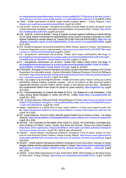 ion-integration/laenderprofile/english-version-country-profiles/541737/the-joys-of-the-few-on-the-s weat-and-tears-of-many-syrian-textile-workers-in-tuerkiye/#footnote-reference-9 , Zugriff 29.1.2024 ■ CARE - CARE International (4.2020): Rapid Gender Analysis MENA – Turkey Program, https: //data2.unhcr.org/fr/documents/download/95542, Zugriff 16.6.2025 ■ CoE-ECSR - Council of Europe - European Committee of Social Rights (3.2024): European Social Charter (Revised); European Committee of Social Rights Conclusions 2023; Türkiye, https://www. ecoi.net/de/quelle/11060.html, Zugriff 13.9.2024 ■ CoE - GRETA - Council of Europe - Group of Experts on Action against Trafficking in Human Beings (22.10.2024): Report concerning the implementation of the Council of Europe Convention on Action against Trafficking in Human Beings by Türkiye (SECOND EVALUATION ROUND), https://rm.coe .int/greta-evaluation-report-on-the-implementation-of-the-council-of-europe/1680b20b66 , Zugriff 20.11.2024 ■ DIS - Danish Immigration Service [Denmark] (6.10.2023): Türkiye; Syrians in Türkiye – the Temporary Protection Regulation and its implementation, https://www.ecoi.net/en/file/local/2100527/ffm-repor t-syrians-in-tuerkiye-final-061023.pdf , Zugriff 2.2.2024 ■ EC - Europäische Kommission (30.10.2024): Türkiye 2024 Report [SWD(2024) 696 final], ht tps://neighbourhood-enlargement.ec.europa.eu/document/download/8010c4db-6ef8-4c85-aa06- 814408921c89_en?filename=Türkiye Report 2024.pdf, Zugriff 5.11.2024 ■ EC - Europäische Kommission (12.10.2022): Türkiye 2022 Report [SWD (2022) 333 final], ht tps://neighbourhood-enlargement.ec.europa.eu/document/download/ccedfba1-0ea4-4220-9f94- ae50c7fd0302_en?filename=Türkiye Report 2022.pdf, Zugriff 31.10.2023 ■ ECRE/AIDA - European Council on Refugees and Exiles, Asylum Information Database (20.8.2024a): Guarantees for vulnerable groups - Asylum Information Database European Council on Refugees and Exiles, https://asylumineurope.org/reports/country/turkiye/content-temporary-protection/guaran tees-vulnerable-groups/#_ftnref12, Zugriff 13.6.2025 ■ İSİG - İşçi Sağlığı ve İş Güvenliği Meclisinden - Health and Safety Labour Watch/ Turkey (11.6.2024): MESEM’de, tarlada, sokakta, sanayide, inşaatta… Son on bir yılda en az 695 çocuk işçi hayatını kaybetti (Bei MESEM, auf den Feldern, auf der Straße, in der Industrie, auf dem Bau… Mindestens 695 Kinderarbeiter haben in den letzten elf Jahren ihr Leben verloren], https://isigmeclisi.org, Zugriff 16.9.2024 ■ IZA - Forschungsinstitut zur Zukunft der Arbeit (6.2021): The Making of a Lost Generation: Child Labor among Syrian Refugees in Turkey (IZA DP No. 14466), https://docs.iza.org/dp14466.pdf , Zugriff 29.1.2024 ■ KAS - Konrad-Adenauer-Stiftung (9.2019): Syrian Refugees in Turkey, https://www.kas.de/documents/ 283907/7339115/Syrian Refugees in Turkey.pdf/5d3d4091-e56d-3c42-2a9c-4e7f5d98706f?version =1.0&t=1571303379232, Zugriff 29.1.2024 ■ Medya - MedyaNews (7.5.2025): Born in exile: Syrian children in Turkey share hopes for safe, free life, https://medyanews.net/born-in-exile-syrian-children-in-turkey-share-hopes-for-safe-free-life , Zugriff 16.6.2025 ■ SO - Syrian Observer, The (12.8.2024): 400,000 Syrian Children Out of School in Turkey - The Syrian Observer, https://syrianobserver.com/refugees/400000-syrian-children-out-of-school-in-turkey.html , Zugriff 16.9.2024 ■ UN-CRC - UN Committee on the Rights of the Child (2.6.2023a): UN Child Rights Committee pub lishes findings on Finland, France, Jordan, Sao Tome and Principe, Türkiye and United Kingdom, https://www.ohchr.org/en/press-releases/2023/06/un-child-rights-committee-publishes-findings-fin land-france-jordan-sao-tome , Zugriff 29.1.2024 [Login erforderlich] ■ UNICEF - United Nations International Children’s Emergency Fund (7.2024): Report on Ana lysis for Out-of-School Syrian Children Türkiye Country Report, https://www.unicef.org/turkiye/en/ media/18041/file/REPORT ON ANALYSIS FOR OUT-OF-SCHOOL SYRIAN CHILDREN.pdf, Zugriff 16.9.2024 ■ UNICEF - United Nations International Children’s Emergency Fund (16.6.2021): Inclusion of Syrian refugee children into the national education system (Turkey), https://www.unicef.org/media/111666/ file/Inclusion of Syrian refugee children into the national education system - Turkey.pdf, Zugriff 29.1.2024 ■ USDOL - United States Department of Labor [USA] (26.9.2023): 2022 Findings on the Worst Forms of Child Labor: Turkey (Türkiye), https://www.ecoi.net/de/dokument/2098576.html, Zugriff 7.8.2024 301