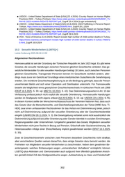 ■ USDOS - United States Department of State [USA] (22.4.2024): Country Report on Human Rights Practices 2023 – Turkey (Türkiye), https://www.state.gov/wp-content/uploads/2024/02/528267_TU ̈RKIYE-2023-HUMAN-RIGHTS-REPORT.pdf , Zugriff 23.4.2024 [Login erforderlich] ■ USDOS - United States Department of State [USA] (15.6.2023): 2023 Trafficking in Persons Report: Türkiye, https://www.ecoi.net/de/dokument/2093649.html, Zugriff 29.1.2024 ■ USDOS - United States Department of State [USA] (20.3.2023): Country Report on Human Rights Practices 2022 – Turkey (Türkiye), https://www.state.gov/wp-content/uploads/2023/03/415610_TU ̈RKIYE-2022-HUMAN-RIGHTS-REPORT.pdf , Zugriff 29.9.2023 ■ VOA - Voice of America (14.6.2024): Report reveals high number of child worker deaths in Turkey, https://www.voanews.com/a/report-reveals-high-number-of-child-worker-deaths-in-turkey-/765672 0.html, Zugriff 16.9.2024 19.3 Sexuelle Minderheiten (LGBTIQ+) Letzte Änderung 2025-08-06 13:32 Allgemeiner Rechtsrahmen Homosexualität ist seit der Gründung der Türkischen Republik im Jahr 1923 legal. Es gibt keine Gesetze, die sexuelle Handlungen zwischen Personen gleichen Geschlechts verbieten. Das ge setzliche Mindestalter für alle sexuellen Handlungen beträgt 18 Jahre, auch zwischen Personen gleichen Geschlechts. Transgender-Personen können ihr Geschlecht rechtlich ändern, aller dings muss zuvor ein Gericht auf Grundlage eines medizinischen Gutachtens die Genehmigung erteilen. Die rechtliche Geschlechtsangleichung ist an die Bedingung geknüpft, dass die Person unverheiratet bleibt und sich einer Operation und Sterilisation unterzieht. Für Transsexuelle besteht die Möglichkeit eines gesetzlichen Geschlechtswechsels im türkischen Recht seit 1988 (DFAT 16.5.2025, S. 30; vgl. MBZ 31.10.2019, S. 42). Das Diskriminierungsverbot in Art. 10 der Verfassung umfasst jedoch nicht explizit die sexuelle Orientierung. Homosexuelle Handlungen werden im Strafgesetz nicht eigens erfasst (AA 20.5.2024, S. 15; vgl. USDOS 22.4.2024, S.75). In diesem Kontext stellte der Menschenrechtsausschuss der Vereinten Nationen fest, dass auch das Gesetz über die Menschenrechts- und Gleichstellungsinstitution der Türkei [HREI bzw. Tİ HEK] zwar einen umfassenden Rechtsrahmen für das Verbot von Diskriminierung bietet, jedoch nicht auf Diskriminierung aufgrund der sexuellen Orientierung oder der Geschlechtsidentität eingeht (UNHRCOM 28.11.2024, S. 3). Die Gesetzgebung verbietet somit nicht ausdrücklich die Diskriminierung aufgrund sexueller Orientierung oder Gender-Identität in sozialen Einrichtungen, Regierungsstellen oder Unternehmen. Umgekehrt garantiert das Gesetz Mitgliedern sexueller Minderheiten nicht jene Rechte in Bezug auf Pension, Erbschaft oder Sozialversicherung, die Heterosexuellen infolge einer Eheschließung implizit gewährleistet werden (DFAT 16.5.2025, S. 30). Zwar ist Geschlechtsverkehr zwischen zwei Personen desselben Geschlechts nicht strafbar, aber verschiedene Quellen weisen darauf hin, dass einige Gesetze dazu benutzt werden, die Freiheiten von Mitgliedern sexueller Minderheiten zu beschneiden. Neben dem gewähnten Be amtengesetz, welches Entlassungen wegen „ unmoralischen Verhaltens“ ermöglicht, können LGBTIQ-plus-Aktivisten und -Demonstranten auch aufgrund ihrer öffentlich geäußerten Ansich ten gemäß Artikel 216 des Strafgesetzbuchs wegen „Aufstachelung zu Hass und Feindschaft“ 302