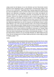 zufolge werden fast alle Afghanen, die von den Behörden nach dem Überschreiten iranisch- türkischen Grenze abgefangen werden, zurückgeschoben. Zurückweisungen erfolgen an der Grenze zum Iran „ systematisch“. Regelmäßig bringen Flugzeuge abgeschobene Afghanen aus der Türkei nach Afghanistan zurück. Pro Woche würden mehrere hundert bis mehrere tausend Afghanen nach Afghanistan zurückgeflogen. Aus diesem Grund melden viele Afghanen sich nach ihrer Ankunft in der Türkei nicht bei den Behörden. Sie betrachteten die Türkei als ein Transitland. Während ihres illegalen Aufenthalts im Land versuchen sie, gemeinsam genug Geld zu verdienen, um die Reise nach Europa bezahlen zu können (MBZ 2.2025a, S. 97f.) Human Rights Watch wiederholte im November 2022 den Vorwurf, dass die Türkei routinemäßig Zehntausende von Afghanen an ihrer Landgrenze zum Iran zurückgewiesen oder sie auch direkt nach Afghanistan abgeschoben hat, ohne ihre Ansprüche auf internationalen Schutz zu prüfen. Selbst Afghanen in der Türkei sind daran gehindert worden, einen Antrag auf internationalen Schutz zu stellen (HRW 18.11.2022). Selbiges berichtete Amnesty International im August 2022, fußend auf Interviews mit 24 afghanischen Flüchtlingen, die 178 betroffene Familienmitglieder repräsentierten. Darüber hinaus erwähnten die Betroffenen Verletzungen und Tötungen infolge des Beschusses durch türkische Sicherheitskräfte. Dokumentiert sind überdies 21 Fälle von Folter oder anderen Misshandlungen durch türkische Sicherheitskräfte (AI 8.2022, S. 7). Unter den Abgeschobenen befanden sich auch ehemalige Mitarbeiter der Afghan National Security Forces, die eine Verfolgung durch die Taliban-Regierung befürchten mussten (MEE 22.4.2022; vgl. BAMF 2.5.2022, S. 13). Quellen ■ AA - Auswärtiges Amt [Deutschland] (20.5.2024): Auswärtiges Amt, Bericht über die asyl- und ab schiebungsrelevante Lage in der Republik Türkei (Stand: Januar 2024), https://www.ecoi.net/en/file /local/2110308/Auswärtiges_Amt,_Bericht_über_die_asyl-_und_abschiebungsrelevante_Lage_in_ der_Republik_Türkei,_20.05.2024.pdf, Zugriff 27.6.2024 [Login erforderlich] ■ ACCORD - Austrian Centre for Country of Origin and Asylum Research and Documentation (8.2020): Turkey COI Compilation 2020, https://www.ecoi.net/en/file/local/2035329/ACCORD Turkey COI Compilation 2020.pdf, Zugriff 5.2.2024 ■ AI - Amnesty International (8.2022): „They don’t treat us like humans“: Unlawful returns of Afghans from Turkey and Iran [ASA 11/5897/2022], https://www.ecoi.net/en/file/local/2078134/ASA115897 2022ENGLISH.pdf, Zugriff 5.2.2024 ■ AIDA - Asylum Information Database (20.8.2024a): Introduction to the asylum context in Türkiye - Asylum Information Database European Council on Refugees and Exiles, https://asylumineurope.o rg/reports/country/turkiye/introduction-asylum-context-turkiye/#_ftn1 , Zugriff 18.9.2024 ■ AIDA - Asylum Information Database (20.8.2024b): Overview of main changes since the previous report update - Asylum Information Database European Council on Refugees and Exiles, https://as ylumineurope.org/reports/country/turkiye/overview-main-changes-previous-report-update/#_ftn17 , Zugriff 19.9.2024 ■ AIDA - Asylum Information Database (20.8.2024c): Types of accommodation - Asylum Information Database European Council on Refugees and Exiles, https://asylumineurope.org/reports/country/t urkiye/reception-conditions/housing/types-accommodation, Zugriff 19.9.2024 ■ AIDA - Asylum Information Database (27.2.2023): Country Report: Freedom of movement, Türkiye, last updated: 27/2/2023, https://asylumineurope.org/reports/country/turkiye/reception-conditions/ac cess-and-forms-reception-conditions/freedom-movement/#_ftnref14 , Zugriff 2.2.2024 ■ AIDA - Asylum Information Database (28.5.2021): Country Report: Turkey, 2020 Update, https: //asylumineurope.org/wp-content/uploads/2021/05/AIDA-TR_2020update.pdf, Zugriff 5.2.2024 ■ AIDA - Asylum Information Database (3.2018): Country Report: Turkey, 2017 Update, http://www. asylumineurope.org/sites/default/files/report-download/aida_tr_2017update.pdf, Zugriff 5.2.2024 329