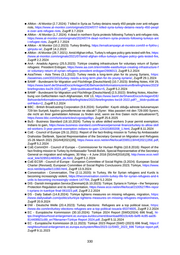 ■ AlMon - Al Monitor (2.7.2024): 7 killed in Syria as Turkey detains nearly 450 people over anti-refugee riots, https://www.al-monitor.com/originals/2024/07/7-killed-syria-turkey-detains-nearly-450-peopl e-over-anti-refugee-riots , Zugriff 3.7.2024 ■ AlMon - Al Monitor (1.7.2024): 4 dead in northern Syria protests following Turkey’s anti-refugee riots, https://www.al-monitor.com/originals/2024/07/4-dead-northern-syria-protests-following-turkeys-ant i-refugee-riots, Zugriff 2.7.2024 ■ AlMon - Al Monitor (10.2.2023): Turkey Briefing, https://emailcampaign.al-monitor.com/t/t-e-fiykho-j yjinyutu-w/, Zugriff 14.2.2023 ■ AlMon - Al Monitor (28.7.2021): Amid Afghan influx, Turkey’s refugee policy gets tested with fire, https: //www.al-monitor.com/originals/2021/07/amid-afghan-influx-turkeys-refugee-policy-gets-tested-fire , Zugriff 2.2.2024 ■ AnA - Anadolu Agency (25.5.2023): Türkiye creating infrastructure for voluntary return of Syrian refugees: President Erdogan, https://www.aa.com.tr/en/middle-east/turkiye-creating-infrastructure-f or-voluntary-return-of-syrian-refugees-president-erdogan/2906013 , Zugriff 5.2.2024 ■ AsiaTimes - Asia Times (3.1.2022): Turkey needs a long-term plan for its young Syrians, https: //asiatimes.com/2022/01/turkey-needs-a-long-term-plan-for-its-young-syrians/ , Zugriff 29.1.2024 ■ BAMF - Bundesamt für Migration und Flüchtlinge [Deutschland] (10.7.2023): Briefing Notes, KW 29, https://www.bamf.de/SharedDocs/Anlagen/DE/Behoerde/Informationszentrum/BriefingNotes/2023/ briefingnotes-kw29-2023.pdf?__blob=publicationFile&v=5, Zugriff 5.2.2024 ■ BAMF - Bundesamt für Migration und Flüchtlinge [Deutschland] (2.5.2022): Briefing Notes, Abschie bung von Geflüchteten nach Afghanistan, KW 13, https://www.bamf.de/SharedDocs/Anlagen/DE/ Behoerde/Informationszentrum/BriefingNotes/2022/briefingnotes-kw18-2022.pdf?__blob=publicati onFile&v=2, Zugriff 5.2.2024 ■ BBC - British Broadcasting Corporation (9.8.2024): Suriyeliler: Kayıtlı olduğu adreste bulunamayan 729 bin Suriyeli, kaydını güncellemezse ne olacak? [Syrer: Was passiert mit den 729.000 Syrern, die nicht an ihrer gemeldeten Adresse zu finden sind, wenn sie ihre Daten nicht aktualisieren?], https://www.bbc.com/turkce/articles/cvgxwjqxl9go, Zugriff 25.6.2025 ■ BuS - Business Standard (18.10.2024): Turkey to allow skilled workers 3-year permit exemption; Indians to gain, https://www.business-standard.com/finance/personal-finance/turkey-to-allow-skill ed-workers-3-year-permit-exemption-indians-to-gain-124101800208_1.html , Zugriff 8.11.2024 ■ CoE - Council of Europe (29.11.2021): Report of the fact-finding mission to Turkey by Ambassador Drahoslav Štefánek, Special Representative of the Secretary General on Migration and Refugees 15-26 March 2021 [SG/Inf(2021)35], https://www.ecoi.net/en/file/local/2065119/Inf(2021)35E.pdf , Zugriff 5.2.2024 ■ CoE-CommDH - Council of Europe – Commissioner for Human Rights (10.8.2016): Report of the fact-finding mission to Turkey by Ambassador Tomáš Boček, Special Representative of the Secretary General on migration and refugees, 30 May – 4 June 2016 [SG/Inf(2016)29], http://www.ecoi.net/l ocal_link/328551/469354_de.html, Zugriff 5.2.2024 ■ CoE-ECSR - Council of Europe - European Committee of Social Rights (3.2024): European Social Charter (Revised); European Committee of Social Rights Conclusions 2023; Türkiye, https://www. ecoi.net/de/quelle/11060.html, Zugriff 13.9.2024 ■ Conversation - Conversation, The (2.11.2020): In Turkey, life for Syrian refugees and Kurds is becoming increasingly violent, https://theconversation.com/in-turkey-life-for-syrian-refugees-and-k urds-is-becoming-increasingly-violent-147704 , Zugriff 5.2.2024 ■ DIS - Danish Immigration Service [Denmark] (6.10.2023): Türkiye; Syrians in Türkiye – the Temporary Protection Regulation and its implementation, https://www.ecoi.net/en/file/local/2100527/ffm-repor t-syrians-in-tuerkiye-final-061023.pdf , Zugriff 2.2.2024 ■ DS - Daily Sabah (14.8.2024): Türkiye tightens measures on missing refugees, migration, https: //www.dailysabah.com/politics/turkiye-tightens-measures-on-missing-refugees-migration/news , Zugriff 20.9.2024 ■ DW - Deutsche Welle (20.4.2023): Turkey elections: Refugees are a top political issue, https: //www.dw.com/en/turkey-elections-refugees-are-a-top-political-issue/a-65374605 , Zugriff 2.2.2024 ■ EC - Europäische Kommission (30.10.2024): Türkiye 2024 Report [SWD(2024) 696 final], ht tps://neighbourhood-enlargement.ec.europa.eu/document/download/8010c4db-6ef8-4c85-aa06- 814408921c89_en?filename=Türkiye Report 2024.pdf, Zugriff 5.11.2024 ■ EC - Europäische Kommission (8.11.2023): Türkiye 2023 Report [SWD (2023) 696 final], https:// neighbourhood-enlargement.ec.europa.eu/system/files/2023-11/SWD_2023_696 Türkiye report.pdf, Zugriff 9.11.2023 330