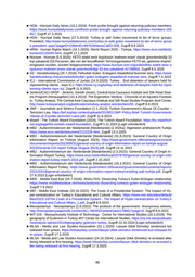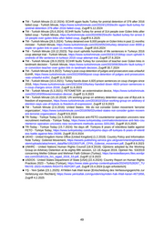 ■ TM - Turkish Minute (3.12.2024): ECtHR again faults Turkey for pretrial detention of 379 after 2016 failed coup - Turkish Minute, https://www.turkishminute.com/2024/12/03/ecthr-again-fault-turkey-for -pretrial-detention-379-after-2016-failed-coup , Zugriff 5.12.2024 ■ TM - Turkish Minute (25.6.2024): ECtHR faults Turkey for arrest of 314 people over Gülen links after failed coup - Turkish Minute, https://turkishminute.com/2024/06/25/ecthr-faulted-turkey-for-arrest-3 14-people-over-gulen-links-after-failed-coup , Zugriff 8.4.2025 ■ TM - Turkish Minute (26.5.2024): Turkey detained over 8,000 people on Gülen links in past 11 months: minister - Turkish Minute, https://www.turkishminute.com/2024/05/24/turkey-detained-over-8000-p eople-on-gulen-link-in-past-11-months-minister , Zugriff 19.6.2024 ■ TM - Turkish Minute (19.12.2023): Top court upholds hundreds of life sentences in Turkeys 2016 coup attempt trial - Turkish Minute, https://www.turkishminute.com/2023/12/19/top-court-uphold-h undreds-of-life-sentence-in-turkeys-2016-coup-attempt-trial , Zugriff 27.6.2024 ■ TM - Turkish Minute (26.9.2023): ECtHR faults Turkey for conviction of teacher over Gülen links in landmark decision - Turkish Minute, https://www.turkishminute.com/2023/09/26/ecthr-fault-turkey-f or-conviction-teacher-over-gulen-link-in-landmark-decision , Zugriff 30.7.2024 ■ TM - Turkish Minute (6.9.2022): Turkey’s post-coup detention of judges and prosecutors was unlawful: EctHR, https://www.turkishminute.com/2022/09/06/post-coup-detention-of-judges-and-prosecutors -was-unlawful-ecthr/ , Zugriff 11.9.2023 ■ TM - Turkish Minute (10.4.2021): Turkey hands down 4,820 prison sentences on coup charges since 2016, https://www.turkishminute.com/2021/04/10/turkey-handed-down-4820-prison-sentences-o n-coup-charges-since-2016/ , Zugriff 11.9.2023 ■ TM - Turkish Minute (5.3.2021): FETOMETER: an extermination device, https://www.turkishminute. com/2021/03/05/extermination-device/, Zugriff 11.9.2023 ■ TM - Turkish Minute (15.10.2019): UN working group on arbitrary detention says use of ByLock is freedom of expression, https://www.turkishminute.com/2019/10/15/un-working-group-on-arbitrary-d etention-says-use-of-bylock-is-freedom-of-expression/ , Zugriff 12.9.2023 ■ TM - Turkish Minute (2.6.2016): United States: We do not consider Gülen movement ’terrorist organization’, https://www.turkishminute.com/2016/06/02/united-states-not-consider-gulen-movem ent-terrorist-organization/, Zugriff 8.9.2023 ■ TR-Today - Türkiye Today (11.5.2025): Extensive anti-FETO counterterror operation uncovers new recruitment methods - Türkiye Today, https://www.turkiyetoday.com/nation/extensive-anti-feto-cou nterterror-operation-uncovers-new-recruitment-methods-across-3201260 , Zugriff 15.5.2025 ■ TR-Today - Türkiye Today (15.7.2024): No days off: Türkiyes 8 years of relentless battle against FETO - Türkiye Today, https://www.turkiyetoday.com/turkiye/no-days-off-turkiyes-8-years-of-relentl ess-battle-against-feto-29289 , Zugriff 20.9.2024 ■ UKHO - United Kingdom Home Office [United Kingdom] (1.2.2018): Country Policy and Information Note Turkey: Gülenist Movement, https://assets.publishing.service.gov.uk/government/uploads/sy stem/uploads/attachment_data/file/1052283/TUR_CPIN_Gülenist_movement.pdf, Zugriff 8.9.2023 ■ UNHRC - United Nations Human Rights Council (18.9.2019): Opinions adopted by the Working Group on Arbitrary Detention at its eighty-fifth session, 12–16 August 2019, Opinion No. 53/2019 concerning Melike Göksan and Mehmet Fatih Göksan (Turkey), https://arrestedlawyers.files.wordpr ess.com/2018/12/a_hrc_wgad_2019_53.pdf, Zugriff 12.9.2023 ■ USDOS - United States Department of State [USA] (22.4.2024): Country Report on Human Rights Practices 2023 – Turkey (Türkiye), https://www.state.gov/wp-content/uploads/2024/02/528267_TU ̈RKIYE-2023-HUMAN-RIGHTS-REPORT.pdf , Zugriff 23.4.2024 [Login erforderlich] ■ YŞ - Yeni Şafak (23.1.2025): AYMden hak ihlali kararı [Entscheidung des Verfassungsgerichts zur Verletzung von Rechten], https://www.yenisafak.com/gundem/aymden-hak-ihlali-karari-4671856 , Zugriff 4.2.2025 49