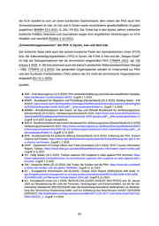 der KCK handelt es sich um einen kurdischen Dachverband, dem neben der PKK auch ihre Schwesterparteien im Irak, im Iran und in Syrien sowie verschiedene gesellschaftliche Gruppen angehören (BMIBH 15.6.2021, S. 261, FN 92). Die Türkei hat in den letzten Jahren zahlreiche kurdische Politiker, Aktivisten und Journalisten wegen ihrer angeblichen Verbindungen zur KCK inhaftiert und verurteilt (Rudaw 3.10.2021). „ Schwesterorganisationen“ der PKK in Syrien, Iran und dem Irak Der türkische Staat sieht auch die syrisch-kurdische Partei der Demokratischen Union (PYD) bzw. die Volksverteidigungseinheiten (YPG) in Syrien, die PJAK in Iran und die „Tawgari Azadî“ im Irak als Teilorganisationen der als terroristisch eingestuften PKK (TRMFA 2022; vgl. ÖB Ankara 4.2025, S. 28) hinzukommen auch die irakisch-jesidischen Widerstandseinheiten Shingal - YBŞ (TRMFA 12.3.2025). Die genannten Organisationen werden im Unterschied zur PKK und den Kurdistan Freiheitsfalken (TAK) seitens der EU nicht als terroristische Organisationen eingestuft (EU 31.1.2025). Quellen ■ ANF - Firat News Agency (12.5.2025): PKK verkündet Auflösung und Ende des bewaffneten Kampfes, https://anfdeutsch.com/kurdistan/-46252, Zugriff 2.7.2025 ■ BAMF - Bundesamt für Migration und Flüchtlinge [Deutschland] (24.2.2025): Briefing Notes - KW 9/2025, https://www.bamf.de/SharedDocs/Anlagen/DE/Behoerde/Informationszentrum/BriefingNot es/2025/briefingnotes-kw09-2025.pdf?__blob=publicationFile&v=4, Zugriff 7.3.2025 ■ BMIBH - Bundesministerium des Innern, für Bau und Heimat/ Bundesamt für Verfassungsschutz [Deutschland] (15.6.2021): Verfassungsschutzbericht 2020, https://www.bmi.bund.de/SharedDocs /downloads/DE/publikationen/themen/sicherheit/vsb-2020-gesamt.pdf?__blob=publicationFile&v=2, Zugriff 12.9.2022 [Login erforderlich] ■ BMI-D - Bundesministerium des Innern/ Bundesamt für Verfassungsschutz [Deutschland] (10.6.2025): Verfassungsschutzbericht 2024, https://www.verfassungsschutz.de/SharedDocs/publikationen/DE/v erfassungsschutzberichte/2025-06-10-verfassungsschutzbericht-2024-startseitenmodul.pdf?__bl ob=publicationFile&v=3, Zugriff 17.6.2025 ■ BPB - Bundeszentrale für politische Bildung [Deutschland] (16.6.2025): Auflösung der PKK: (K)eine Chance auf Frieden, https://www.bpb.de/themen/europa/tuerkei/562919/aufloesung-der-pkk-k-ein e-chance-auf-frieden , Zugriff 1.7.2025 ■ DFAT - Department of Foreign Affairs and Trade [Australien] (16.5.2025): DFAT Country Information Report; Türkiye, https://www.dfat.gov.au/sites/default/files/country-information-report-turkey.pdf , Zugriff 21.5.2025 ■ DS - Daily Sabah (18.2.2025): Türkiye captures 282 suspects in raids against PKK terrorists, https: //www.dailysabah.com/politics/war-on-terror/turkiye-captures-282-suspects-in-raids-against-pkk-t errorists, Zugriff 7.3.2025 ■ DW - Deutsche Welle (25.10.2024): Die Türkei, die Kurden und die PKK, https://www.dw.com/de/di e-türkei-die-kurden-und-die-pkk/a-70596462 , Zugriff 22.11.2024 ■ EC - Europäische Kommission (30.10.2024): Türkiye 2024 Report [SWD(2024) 696 final], ht tps://neighbourhood-enlargement.ec.europa.eu/document/download/8010c4db-6ef8-4c85-aa06- 814408921c89_en?filename=Türkiye Report 2024.pdf, Zugriff 5.11.2024 ■ EU - Europäische Union (31.1.2025): BESCHLUSS (GASP) 2025/207 DES RATES vom 30. Januar 2025 zur Aktualisierung der Liste der Personen, Vereinigungen und Körperschaften, auf die der Ge meinsame Standpunkt 2001/931/GASP über die Anwendung besonderer Maßnahmen zur Bekämp fung des Terrorismus Anwendung findet, und zur Aufhebung des Beschlusses (GASP) 2024/2056 [2025/207], http://publications.europa.eu/resource/cellar/267c1151-df74-11ef-be2a-01aa75ed71a1. 0004.03/DOC_1, Zugriff 7.4.2025 53