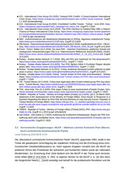 Parteien, Gewerkschaftsmitglieder, Studenten und Journalisten wegen angeblicher Verbindun gen zur MLKP gemeinsam vor Gericht stehen. Aussagen von Geheimzeugen werden in diesen Fällen häufig als Beweismittel gegen Journalisten verwendet. Betroffen waren beispielsweise Reporter und Redakteure der Nachrichtenagentur Etkin (ETHA), wobei die Anklageschriften ETHA von vornherein als Nachrichtenagentur, die im Namen der MLKP arbeitet, definierten (IPI/ MLSA 3.2020). Zum Thema „ Geheimzeugen“ siehe Kapitel: Rechtsstaatlichkeit / Justizwesen im Abschnitt „ Geheime bzw. anonyme Zeugen“. Die MLKP steht nicht auf der EU-Liste zur Anwendung besonderer Maßnahmen zur Bekämpfung des Terrorismus (EU 31.1.2025). Ablehnung des PKK-Beschlusses zur Einstellung des bewaffneten Kampfes Ende Mai 2025 reagierte die MLKP auf die Auflösung der PKK und die Aufgabe des bewaffneten Kampfes mit heftiger Kritik: „ Die Beendigung des bewaffneten Kampfes durch eine ungeschrie bene Vereinbarung, die grundlegende Rechte nicht umfasst, und die offizielle Abgabe der Waffen ist die Akzeptanz eines ungerechten und undemokratischen Friedens. Es ist die aktuelle Aufga be der revolutionären Parteien, den kolonialistischen Friedensprozess zu stoppen“ (serbestiyet 28.5.2025) [elektronische Übersetzung]. Die ablehnende Erklärung endet mit folgendem Aufruf: „Auf der Grundlage dieser Realität rufen wir die Arbeiterklasse, die Werktätigen, die Frauen, die Jugendlichen, die Armen und die Unterdrückten in Kurdistan und der Türkei dazu auf, sich dem Kampf mit allen legalen und illegalen, friedlichen und gewaltsamen, bewaffneten und unbewaff neten Mitteln und Formen anzuschließen, sich zu vereinen, zu organisieren und zu kämpfen“ (AVEG-KON 26.5.2025) [elektronische Übersetzung]. Quellen ■ AnA - Anadolu Agency (5.5.2025): İstanbul merkezli terör örgütü MLKP operasyonunda 8 zanlı yakalandı [Bei einer Operation gegen die in Istanbul ansässige Terrororganisation MLKP wurden acht Verdächtige festgenommen], https://www.aa.com.tr/tr/gundem/istanbul-merkezli-teror-orgut u-mlkp-operasyonunda-8-zanli-yakalandi/3557289 , Zugriff 17.6.2025 ■ AnA - Anadolu Agency (21.1.2025): İstanbul merkezli 6 ilde terör örgütü MLKP’ye yönelik operas yonda 37 zanlı yakalandı [Bei einer Operation gegen die Terrororganisation MLKP in sechs Provinzen mit Schwerpunkt Istanbul wurden 37 Verdächtige festgenommen], https://www.aa.com.tr/tr/gunde m/istanbul-merkezli-6-ilde-teror-orgutu-mlkpye-yonelik-operasyonda-37-zanli-yakalandi/3456753 , Zugriff 17.6.2025 ■ AnA - Anadolu Agency (20.11.2024): Turkish intelligence nabs PKK-linked terrorist, https://www.aa .com.tr/en/turkiye/turkish-intelligence-nabs-pkk-linked-terrorist-/3398584 , Zugriff 29.11.2024 ■ AnA - Anadolu Agency (20.8.2019): US meets with far-left terror group in Syria: minister, https: //www.aa.com.tr/en/turkey/us-meets-with-far-left-terror-group-in-syria-minister/1560965 , Zugriff 27.9.2023 ■ ANF - Firat News Agency (18.7.2024): MLKP: We will resist occupation and defend the lands of Kurdistan, https://anfenglishmobile.com/news/mlkp-we-will-resist-occupation-and-defend-the-lan ds-of-kurdistan-74341 , Zugriff 18.6.2025 ■ ANF - Firat News Agency (8.1.2023): HBDH: We will avenge Ahmet Sores and Firat Neval, https: //anfenglishmobile.com/news/hbdh-we-will-avenge-ahmet-Sores-and-firat-neval-64810 , Zugriff 27.9.2023 56