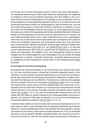 Die Korrektur der Anti-Terror-Gesetzgebung stand im Zentrum des achten Reformpaketes. - Die umstrittenste Bestimmung des Pakets betraf nämlich den Straftatbestand der „ Begehung von Straftaten im Namen einer terroristischen Vereinigung, ohne deren Mitglied zu sein“, der in Artikel 220/6 des türkischen Strafgesetzbuchs (TCK) geregelt war, aber im September 2023 vom Verfassungsgericht als verfassungswidrig aufgehoben worden war. In der Begründung für seine einstimmige Entscheidung erklärte das Verfassungsgericht, dass die Bestimmung „ nicht klar und vorhersehbar genug ist, um willkürliche Praktiken von Behörden zu verhindern, und nicht den Kriterien der Rechtmäßigkeit entspricht“ (EI 4.4.2024; vgl. AI 29.4.2025, MLSA 23.2.2024). Die Änderung von Artikel 220/6 trägt allerdings den bereits bestehenden Bedenken in Bezug auf Klarheit und Vorhersehbarkeit zum besseren Schutz der Menschenrechte von Personen, die einer Straftat beschuldigt werden, nicht in vollem Umfang Rechnung, da der vorgeschlagene Artikel nach wie vor keine klaren Kriterien dafür enthält, wann die Begehung einer Straftat im Namen einer bewaffneten Organisation unter Strafe gestellt werden kann, womit das Gesetz keine auf internationalen Standards basierenden Garantien gegen willkürliche Eingriffe durch staatliche Behörden bietet (AI 29.2.2024, S.2f.; vgl. UNHRCOM 28.11.2024, S. 4). Das heißt, mit dem Justizreformpaket 2024 wurde die Vorschrift über die „ Begehung von Straftaten im Namen einer Organisation, ohne Mitglied zu sein“, trotz vorhergehender Aufhebung und des Auftrages durch das Verfassungsgericht an den Gesetzesgeber innert vier Monaten die Mängel im Gesetzestext zu beheben, unverändert übernommen. Die gleiche Bestimmung gilt auch für „ bewaffnete kriminelle Organisationen“ gemäß Artikel 314 des Strafgesetzbuches (MLSA 23.2.2024). Auswirkungen der Anti-Terror-Gesetzgebung Mit Auslaufen des Ausnahmezustandes im Juli 2018 beschloss das Parlament das Gesetz Nr. 7145, durch das Bestimmungen im Bereich der Grundrechte abgeändert wurden. Zu den zahlreichen, nunmehr gesetzlich verankerten Maßnahmen aus der Periode des Ausnahmezu standes zählt insbesondere die Übertragung außerordentlicher Befugnisse an staatliche Behör den sowie Einschränkungen der Grundfreiheiten. Problematisch ist vor allem der weit ausgelegte Terrorismus-Begriff in der Anti-Terror-Gesetzgebung (ÖB Ankara 4.2025, S.8f.). Das Europäi sche Parlament (EP) „ betont, dass die Anti-Terror-Bestimmungen in der Türkei immer noch zu weit gefasst sind und nach freiem Ermessen zur Unterdrückung der Menschenrechte und aller kritischen Stimmen im Land, darunter Journalisten, Aktivisten und politische Gegner, eingesetzt werden“ (EP 7.6.2022, S. 18, Pt. 29) „ unter der komplizenhaften Mitwirkung einer Justiz, die unfähig oder nicht willens ist, jeglichen Missbrauch der verfassungsmäßigen Ordnung einzu dämmen“, und „ fordert die Türkei daher nachdrücklich auf, ihre Anti-Terror-Gesetzgebung an internationale Standards anzugleichen“ (EP 19.5.2021, S. 9, Pt. 14). In ähnlicher Weise äußerte sich Ende November 2024 der Menschenrechtsausschuss der Ver einten Nationen, indem er seiner Besorgnis über die mangelnde Vereinbarkeit des rechtlichen Rahmens zur Terrorismusbekämpfung mit dem Internationalen Pakt über bürgerliche und politi sche Rechte (ICCPR) äußerte, wobei explizit das Antiterrorgesetzes (Nr. 3713), wo die Begriffe „Terrorismus“ und „ terroristischer Straftäter“ weit gefasst werden. Der Ausschuss war auch be sorgt über das Gesetz Nr. 7262 über die Verhinderung der Finanzierung der Verbreitung von 69