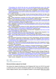 27/Auswärtiges_Amt,_Bericht_über_die_asyl-_und_abschiebungsrelevante_Lage_in_der_Volksr epublik_Bangladesch_(Stand_Juli_2022),_23.08.2022.pdf, Zugriff 12.4.2023 [Login erforderlich] ■ ACAPS - Assessment Capacities Project, The (12.5.2023): Bangladesh: Rising violence, insecurity, and protection concerns in Cox’s Bazar refugee camps - Bangladesh, https://reliefweb.int/report/b angladesh/bangladesh-rising-violence-insecurity-and-protection-concerns-coxs-bazar-refugee-c amps, Zugriff 24.5.2023 ■ AI - Amnesty International (27.3.2023b): Amnesty International Report 2022/23; The State of the World’s Human Rights; Bangladesh 2022, https://www.ecoi.net/de/dokument/2089426.html, Zugriff 3.5.2023 ■ BBC - British Broadcasting Corporation (19.5.2023): Cyclone Mocha death toll rises sharply in Myanmar, https://www.bbc.co.uk/news/world-asia-65646054, Zugriff 23.5.2023 ■ CoM - Council of Minorities (5.4.2023): Joint Submission to the Human Rights Council at the 44th Session of the Universal Periodic Review, https://www.nationalityforall.org/wp-content/uploads/202 3/04/UPR44_Bangladesh_Website.pdf, Zugriff 24.5.2023 ■ DFAT - Department of Foreign Affairs and Trade [Australien] (30.11.2022): DFAT Country Information Report Bangladesh, https://www.ecoi.net/en/file/local/2086697/country-information-report-banglad esh.pdf, Zugriff 18.4.2023 ■ FAZ - Frankfurter Allgemeine Zeitung (15.5.2023): Zyklon Mocha zerstört Flüchtlingscamps in My anmar und Bangladesch, https://www.faz.net/aktuell/gesellschaft/zyklon-mocha-zerstoert-fluechtli ngscamps-in-myanmar-und-bangladesch-18895334.html , Zugriff 23.5.2023 ■ FH - Freedom House (10.3.2023): Freedom in the World 2023 - Bangladesh, https://www.ecoi.net/d e/dokument/2088488.html, Zugriff 18.4.2023 ■ HRW - Human Rights Watch (12.1.2023): World Report 2023 - Events of 2022: Bangladesh, https: //www.hrw.org/world-report/2023/country-chapters/bangladesh, Zugriff 4.5.2023 ■ HRW - Human Rights Watch (15.6.2021): UN Shared Rohingya Data Without Informed Consent, https://www.hrw.org/news/2021/06/15/un-shared-rohingya-data-without-informed-consent , Zugriff 24.5.2023 ■ IOM - International Organization for Migration (16.5.2023): IOM Bangladesh: Rohingya humanitarian crisis response - situation report on cyclone Mocha - 16 May 2023 - Bangladesh, https://reliefweb.in t/report/bangladesh/iom-bangladesh-rohingya-humanitarian-crisis-response-situation-report-cyclo ne-mocha-16-may-2023 , Zugriff 23.5.2023 ■ ÖB New Delhi - Österreichische Botschaft New Delhi [Österreich] (11.2022): Bangladesch Asyllän derbericht, https://www.ecoi.net/en/file/local/2090012/BANG_ÖB-Bericht_2022_11.docx , Zugriff 12.4.2023 [Login erforderlich] ■ Tagesschau - Tagesschau (5.3.2023): Großbrand in Rohingya-Flüchtlingscamp in Bangladesch, https://www.tagesschau.de/ausland/feuer-bangladesch-rohingya-101.html , Zugriff 23.5.2023 ■ UNHCR - United Nations High Commissioner for Refugees (9.5.2023): UNHCR Bangladesh Opera tional Update, March 2023 - Bangladesh, https://reliefweb.int/report/bangladesh/unhcr-banglades h-operational-update-march-2023 , Zugriff 23.5.2023 ■ UNHCR - United Nations High Commissioner for Refugees (30.4.2023): Rohingya Refugee Re sponse/Bangladesh: Joint Government of Bangladesh - UNHCR Population factsheet (as of 30 Apr 2023) - Bangladesh, https://reliefweb.int/report/bangladesh/rohingya-refugee-responsebanglades h-joint-government-bangladesh-unhcr-population-factsheet-30-apr-2023 , Zugriff 24.5.2023 ■ USDOS - United States Department of State [USA] (20.3.2023): 2022 Country Report on Human Rights Practices: Bangladesh, https://www.ecoi.net/de/dokument/2089131.html, Zugriff 18.4.2023 20.2 IDPs Letzte Änderung 2023-06-14 16:54 Binnenvertriebene aufgrund von Gewalt Der Aufstand der indigenen Bevölkerung in den Chittagong Hills Tracts von 1973-97 hat sowohl zu internen als auch zu externen Vertriebenen geführt. Auch nach Beilegung des Konflikts be richten Indigene weiterhin, dass sich bengalische Siedler ihr Land aneignen (DFAT 30.11.2022). 57