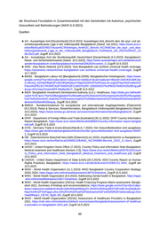 die Shuchona Foundation in Zusammenarbeit mit den Gemeinden mit Autismus, psychischer Gesundheit und Behinderungen (WHO 6.9.2022). Quellen: ■ AA - Auswärtiges Amt [Deutschland] (23.8.2022): Auswärtiges Amt_Bericht über die asyl- und ab schiebungsrelevante Lage in der Volksrepublik Bangladesch (Stand: Juli 2022), https://www.ecoi.n et/en/file/local/2078027/Ausw%C3%A4rtiges_Amt%2C_Bericht_%C3%BCber_die_asyl-_und_absc hiebungsrelevante_Lage_in_der_Volksrepublik_Bangladesch_%28Stand_Juli_2022%29%2C_23. 08.2022.pdf, Zugriff 10.5.2023 ■ AA - Auswärtiges Amt der Bundesrepublik Deutschland [Deutschland] (4.5.2023): Bangladesch: Reise- und Sicherheitshinweise (Stand: 10.5.2023), https://www.auswaertiges-amt.de/de/service/l aender/bangladesch-node/bangladeschsicherheit/206292#content_0, Zugriff 10.5.2023 ■ ANN - Asia News Network (23.9.2022): How Bangladesh can achieve universal health coverage, https://asianews.network/how-bangladesh-can-achieve-universal-health-coverage/ , Zugriff 10.7.2023 ■ BANG - Bangladesh Labour Act [Bangladesch] (2006): Bangladescher Arbeitsgesetz, https://www. google.com/url?sa=t&rct=j&q=&esrc=s&source=web&cd=&cad=rja&uact=8&ved=2ahUKEwiklK2qv rj-AhUvQ_EDHetFBqEQFnoECBIQAQ&url=https%3A%2F%2Fwww.ilo.org%2Fdyn%2Fnatlex%2 Fdocs%2FELECTRONIC%2F76402%2F110637%2FF-1265526237%2FBGD76402%2520Eng.pdf &usg=AOvVaw1tXoeInWPf-5tkofqzMLlT, Zugriff 10.5.2023 ■ BIDA- Bangladesh Investment Development Authority (o.D.): Healthcare, https://bida.gov.bd/health care#:%7E:text=The%20Bangladesh%20healthcare%20sector%20comprises%20of%20hospitals %2C%20clinics%2C,trials%2C%20outsourcing%2C%20telemedicine%2C%20and%20medical%20 devices%20and%20equip, Zugriff 10.5.2023 ■ BMEIA - Bundesministerium für europäische und internationale Angelegenheiten [Österreich] (9.3.2023): Reise & Services, Reiseinformation, Bangladesch (Volksrepublik Bangladesch) (Stand: 10.5.2023), https://www.bmeia.gv.at/reise-services/reiseinformation/land/bangladesch/ , Zugriff 10.5.2023 ■ DFAT - Department of Foreign Affairs and Trade [Australien] (30.11.2022): DFAT Country Information Report Bangladesh, https://www.ecoi.net/en/file/local/2086697/country-information-report-banglad esh.pdf, Zugriff 10.5.2023 ■ GTAI - Germany Trade & Invest [Deutschland] (1.7.2022): Der Gesundheitssektor wird ausgebaut, https://www.gtai.de/de/trade/bangladesch/branchen/der-gesundheitssektor-wird-ausgebaut-85067 2, Zugriff 10.5.2023 ■ ÖB - Österreichische Botschaft New Delhi [Österreich] (11.2022): Asylländerbericht zu Bangladesch, https://www.ecoi.net/en/file/local/2090012/BANG_%C3%96B-Bericht_2022_11.docx , Zugriff 10.5.2023 ■ UKHO - United Kingdom Home Office (7.2022): Country Policy and Information Note Bangladesh: Medical treatment and healthcare [Version 2.0], https://www.ecoi.net/en/file/local/2076101/Count ry_Policy_and_Information_Note_Bangladesh_Medical_treatment_and_healthcare.pdf , Zugriff 10.5.2023 ■ USDOS - United States Department of State [USA] (20.3.2023): 2022 Country Report on Human Rights Practices: Bangladesh, https://www.ecoi.net/de/dokument/2089131.html , Zugriff am 10.5.2023 ■ WHO - World Health Organization (11.1.2023): WHO Bangladesh Country Cooperation Strategy: 2020–2024, https://apps.who.int/iris/rest/bitstreams/1487313/retrieve, Zugriff 10.5.2023 ■ WHO - World Health Organisation (6.9.2022): Addressing mental health in Bangladesh, https://apps .who.int/iris/rest/bitstreams/1481714/retrieve, Zugriff 10.5.2023 ■ WHO - World Health Organization (2021a): Health Financing Progress Matrix assessment, Bangla desh 2021, Summary of findings and recommendations, https://www.google.com/url?sa=t&rct=j&q= &esrc=s&source=web&cd=&ved=2ahUKEwjml92poZX-AhXDVvEDHa2dD3YQFnoECAcQAQ&url= https%3A%2F%2Fapps.who.int%2Firis%2Frest%2Fbitstreams%2F1429259%2Fretrieve&usg=AOv Vaw09heqrJ_CE7tX_RgSl-JIN, Zugriff 10.5.2023 ■ WHO - World Health Organization (2021b): Assessment of Healthcare Providers in Bangladesh 2021, https://cdn.who.int/media/docs/default-source/searo/bangladesh/assessment-of-healthcar e-providers-in-bangladesh-2021.pdf , Zugriff 10.5.2023 65