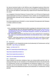 25.2 Hinweis zum Datenschutz Die Herkunftsländer-Informationsstelle des Bundesamtes für Fremdenwesen und Asyl verarbei tet Daten in Übereinstimmung mit der General Data Protection Regulation (GDPR. Verordnung (EU) des Europäischen Parlaments und des Rates vom 27. April 2016 zum Schutz natürlicher Personen bei der Verarbeitung personenbezogener Daten, zum freien Datenverkehr und zur Aufhebung der Richtlinie 95/46/EG) und des österreichischen Datenschutzgesetzes (Bundes gesetz über den Schutz personenbezogener Daten, BGBl. I Nr. 165/1999 idgF). Zum Zweck der Verteilung werden Name, Post- und/oder E-Mail-Adressen gespeichert. Den Empfängern stehen die allgemeinen Rechte auf Auskunft, Berichtigung, Löschung, Einschränkung, Datenübertrag barkeit, Widerruf und Widerspruch zu. Das Abonnement kann jederzeit gekündigt werden (E-Mail mit dem Betreff „ unsubscribe“ an BFA-Staatendokumentation@bmi.gv.at). Informationen zum E-Mail-Verkehr mit dem BMI (Kundmachung gemäß § 13 Abs. 2 AVG) https: //www.bmi.gv.at/Impressum/email_richtlinien.aspx Hinweise für elektronische Anbringen (96,7 KB) https://www.bfa.gv.at/Kontakt/files/Kundmachung_nach_13_Abs_2_und_5_AVG.pdf Amtssignatur – Bildmarke (117,7 KB) https://www.bfa.gv.at/Impressum/files/Amtssignatur-Bildmarke_Veroeffentlichungstext-Neu_2 023_sgn.pdf 25.3 Veröffentlichte Versionen • Version 5, Gültig von 14-06-2023 bis 16-08-2024 • Version 4, Gültig von 16-06-2021 bis 14-06-2023 • Version 3, Gültig von 18-11-2020 bis 16-06-2021 • Version 2, Gültig von 04-09-2020 bis 18-11-2020 • Version 1, Gültig von 19-05-2020 bis 04-09-2020 © 2025 Staatendokumentation des Bundesamtes für Fremdenwesen und Asyl 71