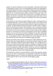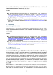 eingreifen. Es gibt keine Staatskirche und keine Staatsreligion. Obwohl jede Diskriminierung in Glaubensfragen verboten ist, kann es zu Benachteiligungen aufgrund der Zugehörigkeit zu einer Bevölkerungsgruppe und damit zu einer indirekten Zurücksetzung aufgrund der Religions zugehörigkeit kommen, da Letztere als konstitutiv für die Zugehörigkeit zu einer Volksgruppe angesehen wird. Die Diskriminierung aus religiösen Gründen steht dabei aber selten im Vor dergrund. Dennoch kam es laut OSZE allein im Januar 2023 zu 18 Straftaten mit Bezug zu Religion oder ethnischer Zugehörigkeit. Die Strafverfolgung entsprechender Fälle ist wie bei anderen Deliktsformen aufgrund von Defiziten im Justizapparat nicht in jedem Fall konsequent (AA 25.7.2023). Die Verfassungen von BiH und jeder der beiden Entitäten des Landes - der Föderation BiH und der Republika Srpska (RS) - sehen die Freiheit des religiösen Denkens und der religiösen Praxis vor, verbieten religiöse Diskriminierung und erlauben registrierten religiösen Organisationen, frei zu arbeiten. Der selbstverwaltete Distrikt Brčko folgt einem nationalen Gesetz zur Religions freiheit. Die Verfassung der Föderation erklärt die Religion zu einem „ wesentlichen nationalen Interesse“ der konstituierenden Völker. In der Verfassung der RS wird die Serbisch-Orthodoxe Kirche (SOK) als „ die Kirche des serbischen Volkes und anderer Völker orthodoxer Religion“ bezeichnet. In der Verfassung von Bosnien und Herzegowina sind alle Ämter im dreiköpfigen Präsidium und in der einen Kammer des Parlaments Mitgliedern der drei großen Volksgruppen vorbehalten, die als „ konstituierende Völker“ bezeichnet werden - Bosniaken, Kroaten und Ser ben -, die überwiegend muslimisch, römisch-katholisch bzw. der SOK angehören. Juden und andere Minderheiten können diese Ämter nicht bekleiden (USDOS 15.5.2023). Während des gesamten Jahres 2022 gab es Berichte über Angriffe, Belästigungen und Ein schüchterungen, die sich gegen Mitglieder der verschiedenen religiösen Gruppen des Landes richteten, einschließlich Vandalismus gegen jüdisches Eigentum. Der Interreligiöse Rat von Bosnien und Herzegowina (IRC) registrierte 15 Fälle von Vandalismus an religiösen Gebäuden und Friedhöfen sowie zwei Vorfälle gegen religiöse Amtsträger. Der IRC erklärte jedoch, dass die Zahl der tatsächlichen Vorfälle wahrscheinlich viel höher sei, dass aber die Religionsge meinschaften nicht alle Vorfälle meldeten, zum Teil, weil Angriffe selten wirksam verfolgt und die Täter fast nie angemessen bestraft würden (USDOS 15.5.2023). Die Organisation für Sicherheit und Zusammenarbeit in Europa (OSZE) registrierte zwischen Januar und Juni 2022 91 Hassverbrechen, die hauptsächlich auf ethnischer oder religiöser Grundlage begangen wurden. Zum Zeitpunkt der Erstellung dieses Berichts gab es 13 laufende Verfahren gegen die Täter; ein Täter wurde 2022 verurteilt (HRW 12.1.2023). Quellen ■ AA - Auswärtiges Amt [Deutschland] (25.7.2023): AA - Bericht im Hinblick auf die Einstufung von Bosnien und Herzegowina als sicheres Herkunftsland im Sinne des § 29 a AsylG, https://www.ecoi .net/en/file/local/2095655/Auswärtiges_Amt,_Bericht_im_Hinblick_auf_die_Einstufung_von_Bosnie n_und_Herzegowina_als_sicheres_Herkunftsland_im_Sinne_des_§_29_a_AsylG,_25.07.2023.pdf, Zugriff 11.12.2023 [Login erforderlich] ■ HRW - Human Rights Watch (12.1.2023): World Report 2023 - Bosnia and Herzegovina, https: //www.ecoi.net/de/dokument/2085393.html, Zugriff 11.12.2023 17