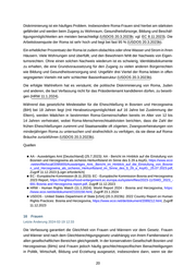 schwersten Menschenrechtsverletzungen des Landes gehört (HRW 12.1.2023; vgl. USDOS 20.3.2023b). Derzeit gibt es zum Schutz betroffener Frauen neun sichere Unterkünfte (Fraunhäuser), von denen sich sechs in der Föderation BiH und drei in der Republika Srpska befinden. Diese Häuser bieten Therapien sowie eine Unterkunft für die Dauer von grundsätzlich sechs Monaten, bei speziellem Bedarf auch länger. Seit Oktober 2000 betreibt die Stiftung für lokale Demokratie das einzige Safe House - Schutzhaus für Frauen und Kinder, die Opfer häuslicher Gewalt sind, im Kanton Sarajevo. Die Unterbringung erfolgt auf Empfehlung des Zentrums für Sozialarbeit und der Polizeibehörden und ist jederzeit möglich und verfügbar (Sarajewo Times). Im Jahr 2021 stellte die Gleichstellungsbehörde des Ministeriums für Menschenrechte und Flüchtlinge 225.000 KM (112.000 USD) für die Durchführung des Projekts „ Stärkung der Ka pazitäten von Institutionen zur Bekämpfung geschlechtsspezifischer Gewalt“ bereit. Ziel des Projekts war es, die Standards der Istanbul-Konvention umzusetzen, die BiH 2013 ratifiziert hat. Das Projekt sieht die Einrichtung von drei Krisen-/Hilfszentren in den Kliniken von Sarajevo, Mostar und Tuzla vor und finanziert die Renovierung von Räumlichkeiten in geburtshilflichen und gynäkologischen Kliniken sowie den Kauf von Ausrüstung (USDOS 20.3.2023b). Frauen leiden überproportional unter sozialer Ausgrenzung und Armut. Der Gender Inequality Index 2019 des UNDP stufte BiH auf Platz 38 von 62 Ländern ein. Chancengleichheit wird nur teilweise erreicht. Frauen und Angehörige ethnischer, religiöser und anderer Minderheitengrup pen haben nur eingeschränkten Zugang zu Bildung, öffentlichen Ämtern und Beschäftigung. Im Jahr 2019 lag die Erwerbsquote der Frauen in Bosnien und Herzegowina bei 37,4 %, verglichen mit einer Quote von 58,15 % bei den Männern, die zu den niedrigsten Quoten in Europa gehört. Darüber hinaus verfügten 74 % der Frauen im Vergleich zu 89,3 % der männlichen Bevölkerung über mindestens einen Sekundarschulabschluss (BS 18.3.2022). Quellen ■ AA - Auswärtiges Amt [Deutschland] (25.7.2023): AA - Bericht im Hinblick auf die Einstufung von Bosnien und Herzegowina als sicheres Herkunftsland im Sinne des § 29 a AsylG, https://www.ecoi .net/en/file/local/2095655/Auswärtiges_Amt,_Bericht_im_Hinblick_auf_die_Einstufung_von_Bosnie n_und_Herzegowina_als_sicheres_Herkunftsland_im_Sinne_des_§_29_a_AsylG,_25.07.2023.pdf, Zugriff 11.12.2023 [Login erforderlich] ■ BS - Bertelsmann Stiftung (18.3.2022): BTI 2022 - Country Report - Bosnia and Herzegowina, https://www.ecoi.net/en/file/local/2069783/country_report_2022_BIH.pdf, Zugriff 12.12.2023 ■ HRW - Human Rights Watch (11.1.2024): World Report 2024 - Bosnia and Herzegovina, https: //www.ecoi.net/de/dokument/2103158.html, Zugriff 23.1.2024 ■ HRW - Human Rights Watch (12.1.2023): World Report 2023 - Bosnia and Herzegovina, https: //www.ecoi.net/de/dokument/2085393.html, Zugriff 11.12.2023 ■ Sarajewo Times (10.9.2023): Women report to the Safe Houses across Bosnia and Herzegovina every Day - Sarajevo Times, https://sarajevotimes.com/women-report-to-the-safe-houses-across-b osnia-and-herzegovina-every-day , Zugriff 23.1.2024 ■ USDOS - United States Department of State [USA] (20.3.2023b): 2022 Country Report on Human Rights Practices: Bosnia and Herzegovina, https://www.ecoi.net/de/dokument/2089212.html, Zugriff 11.12.2023 22