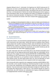Hassreden, Diskriminierung und Gewalt gegen LGBTI-Personen sind weit verbreitet (USDOS 20.3.2023b; vgl. AA 25.7.2023). Die Sarajevo Pride fand im Juni 2022 statt. Im Vorfeld der Parade kam es zu einer Zunahme von LGBT-feindlichen Äußerungen in den sozialen Medi en, auch von Politikern (HRW 12.1.2023). Am 4.4.2022 erließ das Stadtgericht Sarajevo ein bahnbrechendes erstinstanzliches Urteil, in dem die Diskriminierung von LGBTQI+-Personen zum ersten Mal in Bosnien und Herzegowina von einem Gericht bestätigt wurde. Das Urteil bezieht sich auf einen Facebook-Post eines ehemaligen Mitglieds des Kantonsrats von Saraje vo, das im Internet schrieb, dass LGBTQI+-Personen „ isoliert“ und von „ unseren Kindern und der Gesellschaft entfernt“ werden sollten. In dem erstinstanzlichen Urteil heißt es, dass Kritik oder negative Kommentare zu LGBTQI+-Personen und dem Pride March zwar als Redefreiheit angesehen werden können, öffentliche Aufrufe zur Isolierung, Segregation und Entfernung von Personen aus der Gesellschaft aufgrund ihrer sexuellen Orientierung, Geschlechtsidentität oder Geschlechtsmerkmale jedoch als Hassrede gelten (USDOS 20.3.2023b; vgl. HRW 12.1.2023, AI 28.3.2023). Im Jahr 2021 dokumentierte die SOC [Anm.: Sarajewo Open Center, eine GBTI- und Frauen rechtsgruppe] 13 Fälle von Diskriminierung aufgrund der sexuellen Ausrichtung und der Ge schlechtsidentität: 12 Fälle ereigneten sich in der Öffentlichkeit oder online und ein Fall stand im Zusammenhang mit häuslicher Gewalt. Im Jahr 2021 dokumentierte die SOC auch 14 Fälle von Hassverbrechen, was einen Anstieg gegenüber dem vorangegangenen Berichtszeitraum bedeutet, in dem nur zwei Fälle gemeldet wurden. Von den 14 Fällen bezogen sich zwei auf häusliche Gewalt, acht waren Drohungen gegen LGBTQI+-Personen, und vier Fälle waren nicht spezifiziert. Die SOC geht davon aus, dass die tatsächliche Zahl der LGBTQI+-Personen, die Diskriminierung erfahren haben, viel höher ist, aber aus Angst zu wenig berichtet wird. Die SOC berichtet weiters, dass die Justiz im Jahr 2022 große Fortschritte beim Schutz der Rechte von LGBTQI+ gemacht habe (USDOS 20.3.2023b). Transgender-Personen gelten als die verwundbarste Gruppe. Gleichgeschlechtliche Paare ha ben nicht die Möglichkeit, sich offiziell zu registrieren. Nachdem die Föderationsregierung bereits 2018 angekündigt hatte, eine Lösung für gleichgeschlechtliche Paare, die im Ausland geheiratet haben, finden zu wollen, wurde im April 2020 eine Arbeitsgruppe zu dieser Frage einberufen, die Ende 2021 Schlussfolgerungen verabschiedete; diese kamen jedoch aufgrund der politischen Blockade nicht zur weiteren Abstimmung (AA 25.7.2023). Quellen ■ AA - Auswärtiges Amt [Deutschland] (25.7.2023): AA - Bericht im Hinblick auf die Einstufung von Bosnien und Herzegowina als sicheres Herkunftsland im Sinne des § 29 a AsylG, https://www.ecoi .net/en/file/local/2095655/Auswärtiges_Amt,_Bericht_im_Hinblick_auf_die_Einstufung_von_Bosnie n_und_Herzegowina_als_sicheres_Herkunftsland_im_Sinne_des_§_29_a_AsylG,_25.07.2023.pdf, Zugriff 11.12.2023 [Login erforderlich] ■ AI - Amnesty International (28.3.2023): Amnesty International Report 2022/23; Zur weltweiten Lage der Menschenrechte; Bosnien und Herzegowina 2022, https://www.ecoi.net/de/dokument/2094512 .html, Zugriff 5.12.2023 ■ HRW - Human Rights Watch (12.1.2023): World Report 2023 - Bosnia and Herzegovina, https: //www.ecoi.net/de/dokument/2085393.html, Zugriff 11.12.2023 25