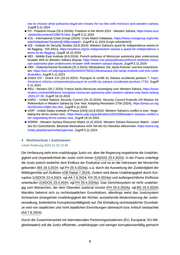 ree-to-choose-what-polisarios-legal-win-means-for-eu-ties-with-morocco-and-western-sahara , Zugriff 5.11.2024 ■ FH - Freedom House (25.4.2024b): Freedom in the World 2024 - Western Sahara, https://www.ecoi .net/en/document/2108079.html, Zugriff 5.11.2024 ■ ICG - International Crisis Group (2024): Crisis Watch Database, https://www.crisisgroup.org/crisis watch/database?location[]=98&created=, Zugriff 6.11.2024 [Login erforderlich] ■ ISS - Institute for Security Studies (16.8.2024): Western Sahara’s quest for independence seems to be flagging - ISS Africa, https://issafrica.org/iss-today/western-sahara-s-quest-for-independence-s eems-to-be-flagging , Zugriff 18.10.2024 ■ MEI - Middle East Institute (8.8.2024): French embrace of Moroccan autonomy plan underscores broader shift on Western Sahara dispute, https://www.mei.edu/publications/french-embrace-moroc can-autonomy-plan-underscores-broader-shift-western-sahara-dispute , Zugriff 5.11.2024 ■ ORF - Österreichischer Rundfunk (25.4.2024): Westsahara: Die „ letzte Kolonie“ und ihre Unterdrück ten, https://oe1.orf.at/programm/20240425/756321/Westsahara-Die-letzte-Kolonie-und-ihre-Unter drueckten, Zugriff 5.11.2024 ■ Orient XXI - Orient XXI (29.10.2024): Pourquoi le conflit du Sahara occidental perdure ?, https: //orientxxi.info/va-comprendre/pourquoi-le-conflit-du-sahara-occidental-perdure,7730 , Zugriff 5.11.2024 ■ REU - Reuters (30.7.2024): France backs Moroccan sovereignty over Western Sahara, https://www. reuters.com/world/france-recognise-moroccan-autonomy-plan-western-sahara-only-basis-lasting -2024-07-30 , Zugriff 18.10.2024 ■ UNSC - United Nations Security Council (31.10.2024): Security Council Extends UN Mission for Referendum in Western Sahara by One Year, Adopting Resolution 2756 (2024), https://press.un.org /en/2024/sc15882.doc.htm, Zugriff 5.11.2024 ■ USIP - United States Institute of Peace [USA] (14.8.2024): Western Sahara’s conflict is over. Nego tiating the terms comes next., https://www.usip.org/publications/2024/08/western-saharas-conflict-o ver-negotiating-terms-comes-next , Zugriff 18.10.2024 ■ WSRW - Western Sahara Resource Watch (4.10.2024): Western Sahara Resource Watch - Urteil des EU-Gerichtshofs: Besetzte Westsahara nicht Teil der EU-Marokko-Abkommen, https://wsrw.org /index.php/de/nachrichten/german, Zugriff 5.11.2024 4 Rechtsschutz / Justizwesen Letzte Änderung 2024-11-25 12:48 Die Verfassung sieht eine unabhängige Justiz vor, aber die Regierung respektierte die Unabhän gigkeit und Unparteilichkeit der Justiz nicht immer (USDOS 23.4.2024). In der Praxis unterliegt die Justiz jedoch weiterhin dem Einfluss der Exekutive und ist an die Interessen der Monarchie gebunden (BS 19.3.2024; vgl.FH 25.4.2024a), u.a. durch die Ausweitung der Zuständigkeit der Militärgerichte auf Zivilisten (ÖB Rabat 7.2024). Zudem wird diese Unabhängigkeit durch Kor ruption (USDOS 23.4.2024; vgl.AA 7.6.2024, FH 25.4.2024a) und außergerichtliche Einflüsse unterlaufen (USDOS 23.4.2024; vgl.FH 25.4.2024a). Das Gerichtssystem ist nicht unabhän gig vom Monarchen, der dem Obersten Justizrat vorsitzt (FH 25.4.2024a; vgl.BS 19.3.2024). Marokko bekennt sich zu rechtsstaatlichen Grundsätzen, allerdings weist das Justizsystem Schwächen (mangelnde Unabhängigkeit der Richter, ausstehende Modernisierung der Justiz verwaltung, bedenkliche Korruptionsanfälligkeit) auf. Die Einhaltung rechtsstaatlicher Grundsät ze wird von staatlichen und nicht staatlichen Einrichtungen überwacht bzw. kritisch beobachtet (AA 7.6.2024). Durch die Zusammenarbeit mit internationalen Partnerorganisationen (EU, Europarat, EU-Mit gliedstaaten) soll die Justiz effizienter, unabhängiger und weniger korruptionsanfällig gemacht 8