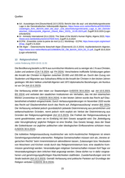 Quellen ■ AA - Auswärtiges Amt [Deutschland] (10.5.2023): Bericht über die asyl- und abschiebungsrelevante Lage in der Demokratischen Volksrepublik Algerien, https://www.ecoi.net/en/file/local/2091939/A uswärtiges_Amt,_Bericht_über_die_asyl-_und_abschiebungsrelevante_Lage_in_der_Demokr atischen_Volksrepublik_Algerien_(Stand_März_2023),_10.05.2023.pdf , Zugriff 20.8.2024 [Login erforderlich] ■ AI - Amnesty International (24.4.2024): The State of the World’s Human Rights; Algeria 2023, https: //www.ecoi.net/de/dokument/2107829.html, Zugriff 21.8.2024 ■ ECPM - Ensemble contre la peine de mort (o.D.): Worldmap - ECPM, https://www.ecpm.org/en/worl dmap, Zugriff 2.9.2024 ■ ÖB Algier - Österreichische Botschaft Algier [Österreich] (21.5.2024): Asylländerbericht Algerien, https://www.ecoi.net/en/file/local/2109608/ALGE_ÖB_Bericht_2024_05_21.pdf , Zugriff 20.8.2024 [Login erforderlich] 13 Religionsfreiheit Letzte Änderung 2024-10-01 11:31 Die Bevölkerung besteht zu 99 % aus sunnitischen Moslems und zu weniger als 1 % aus Christen, Juden und anderen (CIA 7.8.2024; vgl. FH 2024). Verschiedene inoffizielle Schätzungen geben die Anzahl der Christen in Algerien zwischen 20.000 und 200.000 an. Durch den Zuzug von Studenten und Migranten aus Subsahara-Afrika ist die Anzahl der Christen in den letzten Jahren gestiegen. Mit dem Vatikan unterhält Algerien seit 1972 diplomatische Beziehungen, ein Nuntius ist vor Ort (AA 10.5.2023). Die Verfassung erklärt den Islam zur Staatsreligion (USDOS 30.6.2024; vgl. AA 10.5.2023, BS 2024) und verbietet den staatlichen Institutionen ein Verhalten, das mit den islamischen Werten unvereinbar ist (USDOS 30.6.2024). In den letzten Jahren wurde das Recht auf Glau bensfreiheit erheblich eingeschränkt. Durch Verfassungsänderungen im November 2020 wurde das Recht auf Glaubensfreiheit durch das Recht auf „ Religionsausübung“ ersetzt (BS 2024). Die Verfassung verbietet jedoch grundsätzlich jedwede Diskriminierung aus persönlichen und weltanschaulichen Gründen, nennt jedoch nicht explizit ein Verbot der Diskriminierung aus Gründen der Religionszugehörigkeit (AA 10.5.2023). Die Freiheit der Religionsausübung ist somit gewährleistet, wenn sie im Einklang mit dem Gesetz ausgeübt wird. Die „ Beleidigung oder Verunglimpfung“ jeglicher Religion ist eine Straftat. Das Gesetz besagt, dass der Staat die Gotteshäuser vor jeglicher politischen oder ideologischen Einflussnahme schützen muss (USDOS 30.6.2024). Die kollektive Religionsausübung muslimischer wie nicht-muslimischer Religionen ist einem Genehmigungsvorbehalt unterworfen. Religiöse Gemeinschaften müssen sich als „ Vereine al gerischen Rechts“ beim Innenministerium akkreditieren lassen, Zulassungen bzw. Neubauten von Moscheen und Kirchen vorab durch das Religionsministerium bzw. eine staatliche Kom mission genehmigt werden. Veranstaltungen religiöser Gemeinschaften müssen fünf Tage vor Veranstaltungsbeginn dem örtlichen Wali angezeigt werden. Diese dürfen nur in dafür vorgese henen und genehmigungspflichtigen Räumlichkeiten stattfinden. Zuwiderhandlungen sind mit Strafe bedroht (AA 10.5.2023). Gemäß Verfassung sind politische Parteien auf Grundlage der Religion verboten (USDOS 30.6.2024). 15