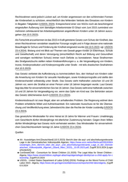 Rechtsrahmen weist jedoch Lücken auf, um Kinder angemessen vor den schlimmsten Formen der Kinderarbeit zu schützen, einschließlich des fehlenden Verbots des Einsatzes von Kindern in illegalen Tätigkeiten (USDOL 2024). Entsprechend einer von NGOs noch als beschönigend eingestuften Äußerung vom damaligen Arbeitsminister El Ghazi vom Juni 2015 zumindest von mehreren zehntausend bei Arbeitsinspektionen angetroffenen Kindern unter 16 Jahren auszu gehen (AA 10.5.2023). Als Fortschritt anzuerkennen ist das 2015 in Kraft getretene Gesetz zum Schutz der Kindheit, das einen Rechtsrahmen verstärkter staatlicher Fürsorge vorgibt und in Folge dessen eine nationale Beauftragte für Schutz und Förderung der Kindheit eingesetzt wurde (AA 10.5.2023; vgl. USDOS 23.4.2024). Bislang sind mit Blick auf Themen wie Gewalt gegen Kinder (in Elternhaus, Schule und Gesellschaft) und deren Versorgung (einschließlich Recht auf Bildung und Gesundheit und sonstigen rechtlichen Schutz) immer noch Defizite zu konstatieren. Neue Strafnormen des Strafgesetzbuchs stellen neben Kindesentführungen u. a. die Vergewaltigung von Kindern, Inzest, Kinderprostitution und Kinderpornografie unter Strafe - mit teils drastischen Strafrahmen (AA 10.5.2023). Das Gesetz verbietet die Aufforderung zu kommerziellem Sex, den Verkauf von Kindern oder die Anwerbung von Kindern für sexuelle Handlungen, sowie Kinderpornografie und stellte den Kindersexhandel vollständig unter Strafe. Das Gesetz sieht Haftstrafen zwischen 10 und 20 Jahren vor, wenn die Straftat an einer Person unter 18 Jahren begangen wurde. Laut Gesetz liegt das Alter für einvernehmlichen Sex bei 16 Jahren. Das Gesetz sieht eine Haftstrafe zwischen 10 und 20 Jahren für Vergewaltigung vor, wenn das Opfer ein Kind war. Die Behörden setzen das Gesetz üblicherweise durch (USDOS 23.4.2024). Kindesmissbrauch ist zwar illegal, aber ein anhaltendes Problem. Die Regierung widmet dem Problem erhebliche Mittel und Aufmerksamkeit. Ein nationaler Ausschuss ist für die Überwa chung und Veröffentlichung eines Jahresberichts über die Rechte der Kinder zuständig (USDOS 23.4.2024). Das gesetzliche Mindestalter für eine Heirat ist 19 Jahre für Männer und Frauen. Unabhängig vom Geschlecht dürfen Minderjährige mit elterlicher Zustimmung heiraten. Gegen ihren Willen dürfen Minderjährige laut Gesetz nicht verheiratet werden. Das Mindestalter für einvernehmli chen Geschlechtsverkehr beträgt 16 Jahre (USDOS 23.4.2024). Quellen ■ AA - Auswärtiges Amt [Deutschland] (10.5.2023): Bericht über die asyl- und abschiebungsrelevante Lage in der Demokratischen Volksrepublik Algerien, https://www.ecoi.net/en/file/local/2091939/A uswärtiges_Amt,_Bericht_über_die_asyl-_und_abschiebungsrelevante_Lage_in_der_Demokr atischen_Volksrepublik_Algerien_(Stand_März_2023),_10.05.2023.pdf , Zugriff 20.8.2024 [Login erforderlich] ■ ConStreetChild - Consortium for Street Children (11.2020): The Legal Atlas for Street Children - Algeria, https://www.streetchildren.org/legal-atlas/map/algeria/legal-identity/can-a-child-apply-for-c itizenship, Zugriff 6.9.2024 ■ USDOL - United States Department of Labor [USA] (2024): Findings on the Worst Forms of Child Labor 2023 - Algeria, https://www.dol.gov/agencies/ilab/resources/reports/child-labor/algeria, Zugriff 6.9.2024 21