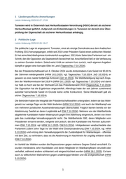 1 Länderspezifische Anmerkungen Letzte Änderung 2025-02-27 17:09 Tunesien wird in Österreich laut Herkunftsstaaten-Verordnung (HStV) derzeit als sicherer Herkunftsstaat geführt. Aufgrund von Entwicklungen in Tunesien ist derzeit eine Über prüfung der Eigenschaft als sicherer Herkunftsstaat anhängig. 2 Politische Lage Letzte Änderung 2025-02-26 13:47 Die politische Lage ist angespannt. Tunesien, einst als einzige Demokratie aus dem Arabischen Frühling 2011 hervorgegangen, erlebt seit 2019 unter Präsident Saïed einen politischen Wandel. Er hat seine Machtbefugnisse kontinuierlich ausgebaut. 2021 löste Saïed das Parlament auf - ein Schritt, den die Opposition als Staatsstreich bezeichnet hat. Anschließend ließ er die Verfassung zu seinen Gunsten ändern. Saïed weist Kritik an seinem Kurs zurück, nach eigenen Angaben kämpft er gegen eine korrupte Elite im Land (Tagesschau 7.10.2024). Bei der Präsidentschaftswahl am 6. Oktober 2024 wurde Amtsinhabers Kaïs Saïed mit 90,69 % der Stimmen wiedergewählt (HRW 16.1.2025; vgl. Tagesschau 7.10.2024, JoD 10.2024), er gewann so eine zweite fünfjährige Amtszeit (JoD 10.2024). Die Wahlbeteiligung lag nach Anga ben der Wahlkommission bei 28,8 % (HRW 16.1.2025; vgl. Tagesschau 7.10.2024) und damit nur halb so hoch wie bei der Stichwahl um das Präsidentenamt 2019 (Tagesschau 7.10.2024). Die Opposition hat die Ergebnisse angezweifelt. Allerdings hatte der seit Jahren zunehmend autoritär herrschende Saïed im Grunde keine echte Konkurrenz. Seine Wiederwahl galt als sicher (Tagesschau 7.10.2024). Die Behörden haben die Integrität der Präsidentschaftswahlen untergraben, indem sie das Wahl gesetz nur wenige Tage vor der Wahl änderten (HRW 3.10.2024); und auch der Wahlkampf war von mehreren juristischen Auseinandersetzungen überschattet. Folglich kamen bereits vor der Abstimmung Zweifel an deren Legitimität auf (DW 7.10.2024). Mehrere von der Wahlbehörde abgelehnte Kandidaten hatten Widerspruch gegen ihre Ablehnung eingereicht, dreien von ihnen gab das zuständige Verwaltungsgericht recht. Die Wahlbehörde ISIE, deren Mitglieder vom Präsidenten ernannt werden, weigerte sich jedoch, die drei Kandidaten ins Rennen aufzuneh men (DW 7.10.2024; vgl. HRW 16.1.2025, DW 9.9.2024). Infolgedessen verabschiedete das Parlament zudem zehn Tage vor der Wahl eine Gesetzesänderung (DW 7.10.2024; vgl. HRW 3.10.2024) und entzog dem Verwaltungsgericht die Zuständigkeit für Wahlanliegen - offenbar mit dem Ziel, zu verhindern, dass es die Abstimmung im Nachhinein für ungültig erklären würde (DW 7.10.2024). Im Vorfeld der Wahlen wurden die Repressionen gegen mehrere Gegner Saïed verschärft. Es wurden mindestens zehn Kandidaten und deren Mitglieder im Wahlkampfteam verurteilt oder verhaftet, während andere schikaniert und eingeschüchtert wurden (HRW 16.1.2025). Es kam auch zu willkürlichen Maßnahmen gegen unabhängige Medien und die Zivilgesellschaft (HRW 3.10.2024). 1