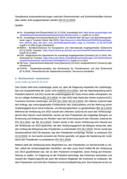Gewaltsame Auseinandersetzungen zwischen Demonstranten und Sicherheitskräften können aber weiter nicht ausgeschlossen werden (AA 10.12.2024). Quellen ■ AA - Auswärtiges Amt [Deutschland] (10.12.2024): Auswärtiges Amt, https://www.auswaertiges-amt .de/de/ReiseUndSicherheit/tunesiensicherheit/219024#content_5, Zugriff 10.12.2024 ■ AA - Auswärtiges Amt [Deutschland] (22.6.2023): AA Bericht über die asyl- und abschiebungsrele vante Lage in Tunesien (Stand: Mai 2023), https://www.ecoi.net/en/file/local/2093953/Auswärtiges_ Amt,_Bericht_über_die_asyl-_und_abschiebungsrelevante_Lage_in_Tunesien,_22.06.2023.pdf , Zugriff 4.12.2024 [Login erforderlich] ■ BMEIA - Bundesministerium für Europäische und Internationale Angelegenheiten [Österreich] (10.12.2024): Tunesien, https://www.bmeia.gv.at/reise-services/reiseinformation/land/tunesien , Zugriff 10.12.2024 ■ EDA - Eidgenössisches Departement für auswärtige Angelegenheiten [Schweiz] (10.12.2024): Rei sehinweise für Tunesien, https://www.eda.admin.ch/eda/de/home/vertretungen-und-reisehinweise/t unesien/reisehinweise-fuertunesien.html#eda931a7d, Zugriff 10.12.2024 ■ ÖB Tunis - Österreichische Botschaft Tunis [Österreich] (10.2022): Asylländerbericht Tunesien [Login erforderlich] ■ STDOK - Staatendokumentation des Bundesamts für Fremdenwesen und Asyl [Österreich] (27.6.2024): Themenbericht der Staatendokumentation: Terrorismus Nordafrika 4 Rechtsschutz / Justizwesen Letzte Änderung 2025-02-26 14:57 Das Gesetz sieht eine unabhängige Justiz vor, aber die Regierung respektiert die Unabhängig keit und Unparteilichkeit der Justiz nicht (USDOS 23.4.2024). Seit der Machtergreifung durch Präsident Saïed im Juli 2021 wurde die Unabhängigkeit der Justiz immer weiter untergraben, bis hin zur völligen Aufhebung (BS 19.3.2024). Im Jahr 2022 löste Saïed den Hohen Justizrat (HJC), Tunesiens höchstes Justizorgan, auf (FH 29.2.2024; BS 19.3.2024). Der Oberste Justizrat hatte den Auftrag, das ordnungsgemäße Funktionieren des Justizsystems und die Wahrung seiner Unabhängigkeit durch seine Aufsichts- und Beratungsfunktion zu gewährleisten (BS 19.3.2024). Während die Verfassung von 2022 sowohl den Obersten Justizrat als auch das Verfassungs gericht dem Namen nach beibehielt, räumte sie dem Präsidenten die endgültige Befugnis zur Ernennung und Entlassung von Richtern nach der Ernennung durch den Obersten Justizrat ein (FH 29.2.2024; vgl. BS 19.3.2024). Zudem wurde in der neuen Verfassung eine Klausel aus der Verfassung von 2014 gestrichen, die dem Verfassungsgericht die Befugnis einräumte, über den Umfang der Befugnisse des Präsidenten zu entscheiden (FH 29.2.2024). Ferner wurde das Gesetzesdekret 2022-35 erlassen, das den Präsidenten ermächtigt, Richter zu entlassen (FH 16.10.2024). Im Juni wurde vonseiten der Richter gestreikt, um gegen die Säuberung der Justiz durch den Präsidenten zu protestieren (FH 29.2.2024). Weiters sieht die Verfassung keine Möglichkeit vor, den Präsidenten zur Rechenschaft zu zie hen, selbst bei schwerwiegenden Verstößen, wie dies zuvor durch Artikel 88 der Verfassung von 2014 gewährleistet war, der es dem Parlament ermöglichte, einen Antrag auf Amtsent hebung zu stellen. Im Gegenzug ist der Präsident berechtigt, das Parlament aufzulösen und sowohl den Regierungschef als auch die anderen Mitglieder der Exekutive zu entlassen, die dem Präsidenten und nicht dem Parlament rechenschaftspflichtig sind. Das Parlament ist bis zur 4