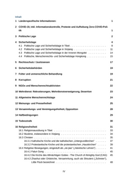 Inhalt 1 Länderspezifische Informationen: 1 2 COVID-19, inkl. Informationskontrolle, Proteste und Aufhebung Zero-COVID-Poli tik 1 3 Politische Lage 2 4 Sicherheitslage 4 4.1 Politische Lage und Sicherheitslage in Tibet . . . . . . . . . . . . . . . . . . . . 8 4.2 Politische Lage und Sicherheitslage in Xinjiang . . . . . . . . . . . . . . . . . . 11 4.3 Politische Lage und Sicherheitslage in der Inneren Mongolei . . . . . . . . . . 14 4.4 Politische, Menschenrechts- und Sicherheitslage Hongkong . . . . . . . . . . . 15 5 Rechtsschutz / Justizwesen 17 6 Sicherheitsbehörden 19 7 Folter und unmenschliche Behandlung 19 8 Korruption 21 9 NGOs und Menschenrechtsaktivisten 22 10 Wehrdienst: Rekrutierungen, Wehrdienstverweigerung, Desertion 23 11 Allgemeine Menschenrechtslage 24 12 Meinungs- und Pressefreiheit 25 13 Versammlungs- und Vereinigungsfreiheit, Opposition 28 14 Haftbedingungen 29 15 Todesstrafe 30 16 Religionsfreiheit 31 16.1 Religionsausübung in Tibet . . . . . . . . . . . . . . . . . . . . . . . . . . . . . 33 16.2 Muslime, insbesondere in Xinjiang . . . . . . . . . . . . . . . . . . . . . . . . . 34 16.3 Christen . . . . . . . . . . . . . . . . . . . . . . . . . . . . . . . . . . . . . . . . 35 16.3.1 Katholische Kirche und die katholischen „ Untergrundkirchen“ . . . . . . 37 16.3.2 Protestantische Kirche und die protestantischen „ Hauskirchen“ . . . . . 39 16.4 Religiöse Bewegungen, eingestuft als „ xie jiao“ („ häretische Lehren“). . . . . . 41 16.4.1 Falun Gong . . . . . . . . . . . . . . . . . . . . . . . . . . . . . . . . . . 45 16.4.2 Die Kirche des Allmächtigen Gottes - The Church of Almighty God (CAG) 45 16.4.3 Zhaohui oder Ortskirche, Versammlung, auch als Shouters („ Schreier“), Little Flock bezeichnet . . . . . . . . . . . . . . . . . . . . . . . . . . . . 48 IV