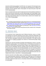 kultureller Identität (FH 29.2.2024b). Seit 2009 haben sich insgesamt 160 überwiegend junge ethnische Tibeterinnen und Tibeter aus Protest gegen die Beschränkung ihrer religiösen und kulturellen Autonomie öffentlich selbst in Brand gesetzt. Der letzte Fall wurde im April 2022 berichtet (AA 26.10.2022). Reisen ins Ausland werden durch starke Verzögerungen bei der Passausstellung in Gebieten mit hohem Anteil ethnischer Minderheiten erschwert (AA 26.10.2022; vgl. FH 29.2.2024b). Zudem behindert die verstärkte Zusammenarbeit zwischen China und Nepal Tibeter beim Grenzübertritt nach Nepal. Einige tibetische Pilger, die ins Ausland reisten, wurden bei ihrer Rückkehr nach China inhaftiert (FH 29.2.2024b). Quellen ■ AA - Auswärtiges Amt [Deutschland] (26.10.2022): Bericht über die asyl- und abschiebungsrelevante Lage in der Volksrepublik China (Stand: September 2022), https://www.ecoi.net/en/file/local/20814 20/Auswärtiges_Amt,_Bericht_über_die_asyl-_und_abschiebungsrelevante_Lage_in_der_Volksr epublik_China_(Stand_September_2022),_26.10.2022.pdf, Zugriff 20.2.2023 [Login erforderlich] ■ FH - Freedom House (29.2.2024b): Freedom in the World 2024 - Tibet, https://www.ecoi.net/en/do cument/2108074.html, Zugriff 13.8.2024 ■ ÖB Peking - Österreichische Botschaft Peking [Österreich] (2024): Asylbericht 2023: Volksrepublik China (Stand Juli 2024) 17.2 Minderheiten: Uiguren Letzte Änderung 2024-11-28 10:41 In der autonomen Provinz Xinjiang leben etwa 20 Millionen Menschen, wovon ca. 10 Millio nen Angehörige der uigurischen Bevölkerung sowie anderer muslimischer Minderheiten sind (AA 26.10.2022). Es wird von schweren Menschenrechtsverletzungen gegen Uiguren, Kasa chen, und andere überwiegend muslimische ethnische Minderheiten in der Region berichtet (AI 24.4.2024; vgl. USDOS 23.4.2024),für die niemand zur Rechenschaft gezogen wird(AI 24.4.2024). Angehörige der uigurischen Bevölkerung beklagen Benachteiligungen im Berufs- und Ausbil dungsbereich (AA 26.10.2022). Trotz der Bestimmungen zur Sicherstellung der kulturellen und sprachlichen Rechte werden internationalen Medien zufolge in ganz Xinjiang Maßnahmen um gesetzt, die einen vollständigen Unterricht in Mandarin ab dem Vorschulalter vorschreiben und die Verwendung des Uigurischen bei allen Bildungsaktivitäten und in der Verwaltung verbieten (USDOS 23.4.2024). Muslime sind insbesondere im Rahmen der Kampagne zur Sinisierung der Religionen zunehmend Restriktionen und Diskriminierungen ausgesetzt, die Religionsaus übung wird insbesondere bei der uigurischen Bevölkerung stark reglementiert [siehe dazu auch Religionsfreiheit Muslime, insbesondere in Xinjiang] (AA 26.10.2022). Seit 2017 sind mehr als eine Million Uiguren und Angehörige anderer überwiegend muslimi scher Minderheitengruppen willkürlichen Verhaftungen und Inhaftierungen durch die Regierung ausgesetzt, darunter in außergerichtlichen Internierungslagern, Gefängnissen und zusätzlich eine weitere unbekannte Anzahl, die einer „ Umerziehung“ unterworfen wird (USDOS 23.4.2024; vgl. AI 24.4.2024). 55