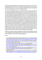 der rasant alternden Bevölkerung steht das chinesische Pensionssystem vor besonderen Her ausforderungen. Waren 2016 16,7 % der chinesischen Bevölkerung älter als 60 Jahre, liegt der Anteil 2021 bereits bei 18,7 %. Damit ist zu befürchten, dass das chinesische Pensionssystem bald an seine Kapazitätsgrenzen stoßen wird (ÖB Peking 2024). Die Mindestunterhaltsbeihilfe (Dibao) ist ein Programm für Haushalte, deren Pro-Kopf-Einkom men unter einem festgelegten Mindestniveau liegt. Dies kann darauf zurückzuführen sein, dass Familienmitglieder aufgrund von Behinderungen oder schweren Krankheiten nicht in der La ge sind zu arbeiten. Die qualifizierten Haushalte haben Anspruch auf ein Existenzminimum, um einige grundlegende Lebenshaltungskosten zu decken. Im ersten Quartal 2023 stieg der Durchschnittswert des städtischen Existenzminimums in China auf 758,6 CNY pro Person und Monat, was 9 % der durchschnittlichen monatlichen Ausgaben der Stadtbewohner entspricht. Der Durchschnittswert des ländlichen Existenzminimums betrug 589,5 CNY pro Person und Monat und deckt statistisch somit 12 % der Ausgaben der Landbewohner ab. Allerdings können der Schwellenwert und der Betrag der Beihilfe zwischen den verschiedenen Regionen aufgrund der Unterschiede im lokalen Wirtschaftsstatus und des Durchschnittseinkommens erheblich va riieren. Seit 2015 erhalten sowohl ländliche als auch städtische Dibao-Haushalte in Peking mehr als 700 CNY pro Person und Monat, während die ländlichen Haushalte in einigen Provinzen monatlich nur etwa 200 CNY pro Person erhalten. Im April 2023 waren landesweit etwa 44,5 Millionen Menschen von dem Programm erfasst. Die lokalen Dibao-Schwellenwerte und An meldeverfahren sind abhängig von der lokalen Verwaltung und Politik. Informationen zu diesem Programm erhält man bei den örtlichen Sozialversicherungsämtern (IOM 1.2023). Angesichts des niedrigen Niveaus der Sozialleistungen bleibt die familiäre Solidarität in Notfällen und im Pensionsalter eine entscheidende Stütze. In China wird erwartet, dass Kinder ihre Eltern im Alter maßgeblich finanziell unterstützen (ÖB Peking 2024). Quellen ■ AA - Auswärtiges Amt [Deutschland] (26.10.2022): Bericht über die asyl- und abschiebungsrelevante Lage in der Volksrepublik China (Stand: September 2022), https://www.ecoi.net/en/file/local/20814 20/Auswärtiges_Amt,_Bericht_über_die_asyl-_und_abschiebungsrelevante_Lage_in_der_Volksr epublik_China_(Stand_September_2022),_26.10.2022.pdf, Zugriff 20.2.2023 [Login erforderlich] ■ BS - Bertelsmann Stiftung (2.7.2024): BTI 2024 China Country Report, https://bti-project.org/en/re ports/country-report/CHN, Zugriff 2.7.2024 ■ CIA - Central Intelligence Agency [USA] (6.6.2024): CIA - Central Intelligence Agency, https://www. cia.gov/the-world-factbook/countries/china/#military-and-security , Zugriff 10.6.2024 ■ GTAI - Germany Trade and Invest (26.8.2021): Sozialversicherungsbeiträge sind in China ein Muss, https://www.gtai.de/de/trade/china/wirtschaftsumfeld/sozialversicherungsbeitraege-sind-in-china-e in-muss-691432, Zugriff 5.8.2024 ■ IOM - International Organization for Migration (1.2023): China: Länderinformationsblatt 2023, https: //files.returningfromgermany.de/files/CFS_China_2023_DE.pdf, Zugriff 5.8.2024 ■ ÖB Peking - Österreichische Botschaft Peking [Österreich] (2024): Asylbericht 2023: Volksrepublik China (Stand Juli 2024) ■ Spiegel - Spiegel, Der (15.2.2024): Abstieg Japans: Deutschland ist wieder Nummer drei der größten Volkswirtschaften, https://www.spiegel.de/wirtschaft/deutschland-ist-wieder-nummer-drei-der-gro essten-volkswirtschaften-der-welt-a-4983d80b-6eef-4226-b620-097934febf6c , Zugriff 5.8.2024 80