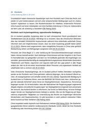 23 Rückkehr Letzte Änderung 2024-11-28 10:41 Grundsätzlich haben chinesische Staatsbürger nach ihrer Rückkehr nach China das Recht, sich wieder im Land niederzulassen und sich unter entsprechenden Bedingungen auch im „ Hukou- System“ registrieren zu lassen. Die Rückkehrsituation für mittellose, kinderreiche Personen ohne Aussicht auf einen Arbeitsplatz und ohne familiäre Anbindung in China ist, insbesondere auf dem Land, als schwierig zu beurteilen (ÖB Peking 2024). Rückkehr nach Asylantragstellung, oppositioneller Betätigung Ein im Ausland gestellter Asylantrag allein ist nach chinesischem Recht grundsätzlich kein Straftatbestand (AA 26.10.2022). Allerdings ist zu erwarten, dass die chinesischen Behörden über das Verhalten chinesischer Asylsuchender während ihres Aufenthalts außerhalb Chinas informiert sind und möglicherweise wissen, dass sie einen Asylantrag gestellt haben (DFAT 22.12.2021). Ebenso kann angenommen, dass rückgeführte Personen in China unter genauer Beobachtung stehen und Befragungen ausgesetzt sind (AA 26.10.2022). Personen, die China illegal, d. h. unter Verletzung der Grenzübertrittsbestimmungen verlassen haben, können bestraft werden. Nach bisherigen Erkenntnissen wird das Vergehen in der Praxis im Normalfall aber nur gelegentlich und dann nur mit Geldbuße geahndet. Bei Angehörigen von sensiblen, generalverdachtsmäßig als staatsgefährdend angesehenen Minderheiten (besonders Tibeterinnen und Tibeter, Uigurinnen und Uiguren) stellt sich die Lage jedoch in aller Regel anders dar. Hier ist oft mit einem Verschwinden dieser Personen und ungewissem Verbleib auf unbefristete Zeit zu rechnen (AA 26.10.2022). Viele chinesische Staatsangehörige, die im Ausland politisch heiklen Aktivitäten nachgehen, werden an der Rückkehr nach China gehindert, während diejenigen, die im Ausland Zuflucht su chen, oft zwangsrepatriiert und verhaftet werden (FH 29.2.2024a). Oppositionelle Betätigung im Ausland kann zu Problemen führen, wenn die Behörden der Ansicht sind, dass „ Verbrechen ge gen die nationale Sicherheit“ (etwa Verrat von Staatsgeheimnissen, Separatismus, Terrorismus) begangen wurden. Es ist festzuhalten, dass alle Maßnahmen der Regierung gegen sogenannte „ illegale religiöse und politische Gruppierungen“ als Staatsgeheimnis eingestuft sind und jemand, der versucht, das Ausland darüber zu informieren, hat Grund zur Befürchtung, mit einer Anklage wegen Verrats von Staatsgeheimnissen belangt zu werden. Alle von der Regierung als Sepa ratismus eingestuften Tätigkeiten zur Unterstützung der Rechte von Angehörigen ethnischer Minderheiten sind Staatsverbrechen. Es gibt besonders in solch politisch motivierten Fällen keine Aussicht auf faire Verfahren (ÖB Peking 2024). China respektiert weder Asylrecht noch Refoulement-Verbote (ÖB Peking 2024). Die Strafverfol gungsbehörden führen weiterhin nordkoreanische Überläufer zurück, denen bei ihrer Rückkehr Inhaftierung oder Hinrichtung drohen (FH 29.2.2024a). 83