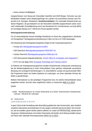 Die Rückkehrunterstützung umfasst folgende Leistungen: • Kostenlose individuelle Beratung zur freiwilligen Rückkehr einschließlich Antragsstellung auf finanzielle Unterstützung durch die BBU • Organisatorische Unterstützung bei der Reisevorbereitung • Übernahme der Heimreisekosten • Finanzielle Starthilfe in Höhe von bis zu € 900 • Reintegrationsprogrammteilnahme nach der Rückkehr im Zielland Ein Rechtsanspruch auf diese Unterstützungsleistungen besteht nicht. Die Bewilligung erfolgt durch das österreichische Bundesamt für Fremdwesen und Asyl (BFA). Weitere Informationen zu den aktuellen Unterstützungsangeboten (Rückkehrunterstützung inkl. Reintegrationsunter stützung) sind auf der Webseite www.returnfromaustria.atverfügbar. Die BBU unterstützt sowohl bei der Reiseplanung und der Flugbuchung als auch bei der Be schaffung von Heimreisedokumenten, einer ggf. notwendigen medizinischen Versorgung sowie mit der Übernahme der Rückreisekosten. Organisatorische Unterstützung kann grundsätzlich in jeder Verfahrenskonstellation gewährt werden. Voraussetzung für die Gewährung der Über nahme der Heimreisekosten ist die Mittellosigkeit der rückkehrenden Person. Finanzielle Starthilfe Die Höhe der finanziellen Starthilfe ist in einem degressiven Modell geregelt und staffelt sich nach dem Zeitpunkt der Antragstellung auf unterstützte freiwillige Rückkehr: • Während des laufenden asyl- oder fremdenrechtlichen Verfahrens bis ein Monat nach Rechtskraft der Rückkehrentscheidung: € 900,00 pro Person; ab einem Monat nach Rechts kraft der Rückkehrentscheidung: € 250,00 pro Person • Kernfamilien: Maximalbetrag von € 3.000 pro Familie • Sonderkonstellation: Für vulnerable Rückkehrende, die grundsätzlich von der finanziellen Starthilfe ausgeschlossen wären, kann nach individueller Einzelfallprüfung durch das Bun desamt für Fremdenwesen und Asyl (BFA) ein einmaliger Betrag von € 250,00 pro Person gewährt werden. Kriterien für den Erhalt der finanziellen Starthilfe und der Reintegrationsunterstützung (Ausnah men im Einzelfall möglich): • Freiwillige Ausreise • Finanzielle Bedürftigkeit bzw. Mittellosigkeit • Erstmaliger Bezug der Unterstützungsleistung • Nachhaltigkeit der Ausreise • Keinerlei Evidenz eines Sicherheitsrisikos durch die freiwillige Rückkehr 85