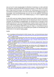 aber auch aus EU-Ländern (AA 26.5.2023). Die öffentlichen Krankenhäuser, vor allem außerhalb der Hauptstadt, entsprechen nicht dem europäischen Standard. In Tiflis, Batumi und Kutaissi gibt es einige private Einrichtungen, die hinsichtlich der Unterbringung und der technischen und fachlichen Ausstattung modern und auf dem neuesten Stand sind (BMEIA 24.9.2024; vgl. AA 4.6.2024). Viele Gesundheitsleistungen sind noch nicht von der staatlichen Versicherung abgedeckt. Im Rahmen des UHCP ist die Notfallversorgung zu 70-100 % abgedeckt (IOM 6.2023). Im Jahr 2022 wurde das Verfahren Diagnosis Related Groups (DRG) im Bereich der Gesund heitsversorgung vorgestellt. Das DRG-System dient der Überprüfung der Sätze für medizinische Leistungen, der Übertragung von Budgetbeträgen, der Klassifizierung von Leistungen und der Erstellung gemeinsamer Tarife. Bei Nichteinhaltung der Vorgaben können Krankenhäuser vom UHCP ausgeschlossen werden (GIP 1.2.2023). Die Einführung des DRG-Systems und die Re gulierung der Arzneimittelpreise haben den Zugang der Bürger zur Gesundheitsversorgung verbessert, aber auch das Risiko einer Verschlechterung der Qualität von Dienstleistungen und Medikamenten mit sich gebracht (GIP 5.3.2024). Quellen ■ AA - Auswärtiges Amt [Deutschland] (4.6.2024): Georgien: Reise- und Sicherheitshinweise (Stand: 3.9.2024), https://www.auswaertiges-amt.de/de/ReiseUndSicherheit/georgiensicherheit/201918#co ntent_4, Zugriff 3.9.2024 ■ AA - Auswärtiges Amt [Deutschland] (26.5.2023): Bericht über die asyl- und abschiebungsrelevante Lage in Georgien (Stand: April 2023), https://www.ecoi.net/en/file/local/2092800/Auswärtiges_Amt, _Bericht_über_die_asyl-_und_abschiebungsrelevante_Lage_in_Georgien_(Stand_April_2023),_26. 05.2023.pdf, Zugriff 17.10.2024 [Login erforderlich] ■ BMEIA - Bundesministerium für Europäische und Internationale Angelegenheiten [Österreich] (24.9.2024): Georgien, https://www.bmeia.gv.at/reise-services/reiseinformation/land/georgien , Zugriff 17.10.2024 ■ EK - Echo Kawkasa (18.3.2023): Верхний порог цен включен еще на 300 медицинских пре паратов в Грузии [Preisobergrenze für 300 weitere Arzneimittel in Georgien eingeführt], https: //www.ekhokavkaza.com/a/32323996.html, Zugriff 17.10.2024 ■ EOHSP - European Observatory on Health Systems and Policies (12.9.2022): Health Systems in Action; Georgia, 2022 Edition, https://iris.who.int/bitstream/handle/10665/362341/9789289059121 -eng.pdf?sequence=1, Zugriff 17.10.2024 ■ EUAA MedCOI - Medical Country of Origin Information by EUAA (European Agency for Asylum) (9.5.2023): Question & Answer ACC 7781, https://medcoi.euaa.europa.eu/Source/DownloadAttac hment/23559?RepositoryId=20604, Zugriff 17.10.2024 [Login erforderlich] ■ EUAA MedCOI - Medical Country of Origin Information by EUAA (European Agency for Asylum) (3.8.2022): Question & Answer ACC 7659, https://medcoi.euaa.europa.eu/Source/DownloadAttac hment/21886?RepositoryId=20439, Zugriff 8.9.2023 [Login erforderlich] ■ GGW GEOR - Gesetz über das Gesundheitswesen [Georgien] (28.6.2017): Law of Georgia on Health Care, https://matsne.gov.ge/en/document/view/29980?publication=37, Zugriff 17.10.2024 ■ GIP - Georgian Institute of Politics (5.3.2024): The Georgia Governance Index (GGI) 2023, https: //gip.ge/wp-content/uploads/2024/04/Georgia-Goverance-Index-Report-2023_Eng.pdf , Zugriff 14.8.2024 ■ GIP - Georgian Institute of Politics (1.2.2023): The Georgia Governance Index (GGI) 2022, https: //gip.ge/wp-content/uploads/2023/02/Georgia-Goverance-Index-Report-2022_Eng_Web.pdf , Zugriff 17.10.2024 ■ IOM - International Organization for Migration (6.2023): Georgien: Länderinformationsblatt 2023, https://files.returningfromgermany.de/files/CFS_Georgia_2023_DE.pdf, Zugriff 16.9.2024 49