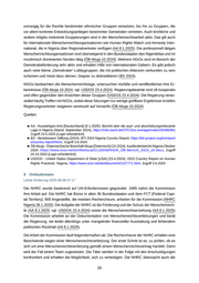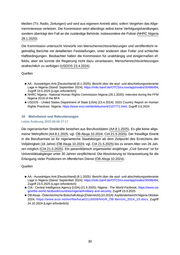 vorrangig für die Rechte bestimmter ethnischer Gruppen einsetzen, bis hin zu Gruppen, die vor allem konkrete Entwicklungsanliegen bestimmter Gemeinden vertreten. Auch kirchliche und andere religiös motivierte Gruppierungen sind in der Menschenrechtsarbeit aktiv. Das gilt auch für internationale Menschenrechtsorganisationen wie Human Rights Watch und Amnesty Inter national, die in Nigeria über Regionalvertreter verfügen (AA 8.1.2025). Die professionell tätigen Menschenrechtsorganisationen sind überwiegend in den Bundesstaaten des Nigerdeltas und im muslimisch dominierten Norden tätig (ÖB Abuja 10.2024). Mehrere NGOs sind im Bereich der Demokratieförderung sehr aktiv und erhalten Hilfe von internationalen Gebern. Es gibt jedoch auch viele kleine „ Demokratie“-Lobbygruppen, die mit politischen Akteuren verbunden zu sein scheinen und meist dazu dienen, Gegner zu diskreditieren (BS 2024). NGOs beobachten die Menschenrechtslage, untersuchen Vorfälle und veröffentlichen ihre Er kenntnisse (ÖB Abuja 10.2024; vgl. USDOS 23.4.2024). Regierungsbeamte sind oft kooperativ und offen gegenüber den Ansichten dieser Gruppen (USDOS 23.4.2024). Die Regierung veran staltet häufig Treffen mit NGOs, wobei diese Sitzungen nur wenige greifbare Ergebnisse erzielen. Regierungsvertreter reagieren vereinzelt auf Vorwürfe (ÖB Abuja 10.2024). Quellen ■ AA - Auswärtiges Amt [Deutschland] (8.1.2025): Bericht über die asyl- und abschiebungsrelevante Lage in Nigeria (Stand: September 2024), https://milo.bamf.de/OTCS/cs.exe/app/nodes/30496494, Zugriff 23.5.2025 [Login erforderlich] ■ BS - Bertelsmann Stiftung (2024): BTI 2024 Nigeria Country Report, https://bti-project.org/en/report s/country-report/NGA, Zugriff 3.6.2024 ■ ÖB Abuja - Österreichische Botschaft Abuja [Österreich] (10.2024): Asylländerbericht Nigeria Oktober 2024, https://www.ecoi.net/en/file/local/2116558/NIGR_ÖB-Bericht_2024_10.docx , Zugriff 24.10.2024 [Login erforderlich] ■ USDOS - United States Department of State [USA] (23.4.2024): 2023 Country Report on Human Rights Practices: Nigeria, https://www.ecoi.net/de/dokument/2107771.html, Zugriff 3.6.2024 9 Ombudsmann Letzte Änderung 2025-08-08 07:17 Die NHRC wurde basierend auf UN-Erfordernissen gegründet. 1995 nahm die Kommission ihre Arbeit auf. Die NHRC hat Büros in allen 36 Bundesstaaten und dem FCT [Federal Capi tal Territory]. 900 Angestellte, die meisten Rechercheure, arbeiten für die Kommission (NHRC Nigeria 28.1.2020). Die Aufgabe der NHRC ist die Förderung und der Schutz der Menschenrech te (AA 8.1.2025; vgl. USDOS 23.4.2024) sowie die Menschenrechtserziehung (AA 8.1.2025). Die Kommission arbeitet an der Dokumentation von Menschenrechtsverletzungen und berät die Regierung, sie leidet allerdings unter mangelnder finanzieller Ausstattung und fehlendem politischen Rückhalt (AA 8.1.2025). Die Arbeit der Kommission läuft folgendermaßen ab: Die Rechercheure der NHRC erhalten eine Beschwerde wegen einer Menschenrechtsverletzung. Der erste Schritt ist es, zu prüfen, ob es sich um eine Menschenrechtsverletzung gemäß einem Menschenrechtsvertrag handelt. Dann wird der Fall einem Team zugewiesen. Die Täter werden in der Folge mit den Anschuldigungen konfrontiert und erhalten die Möglichkeit, sich zu verteidigen. Die NHRC überwacht auch die 29